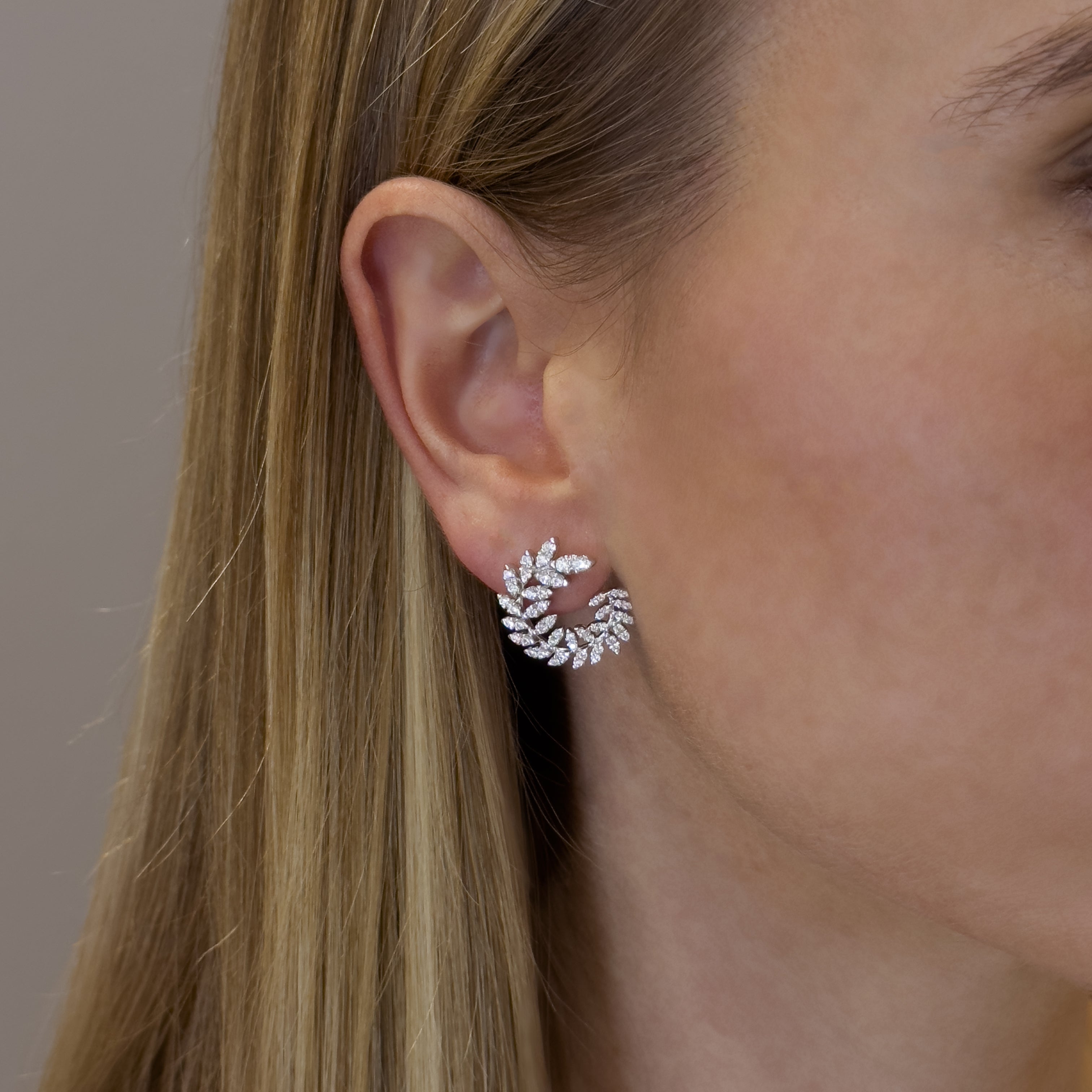 Collection Leaves and crossed Earring Gold, Diamond 1.12 ct, climbers