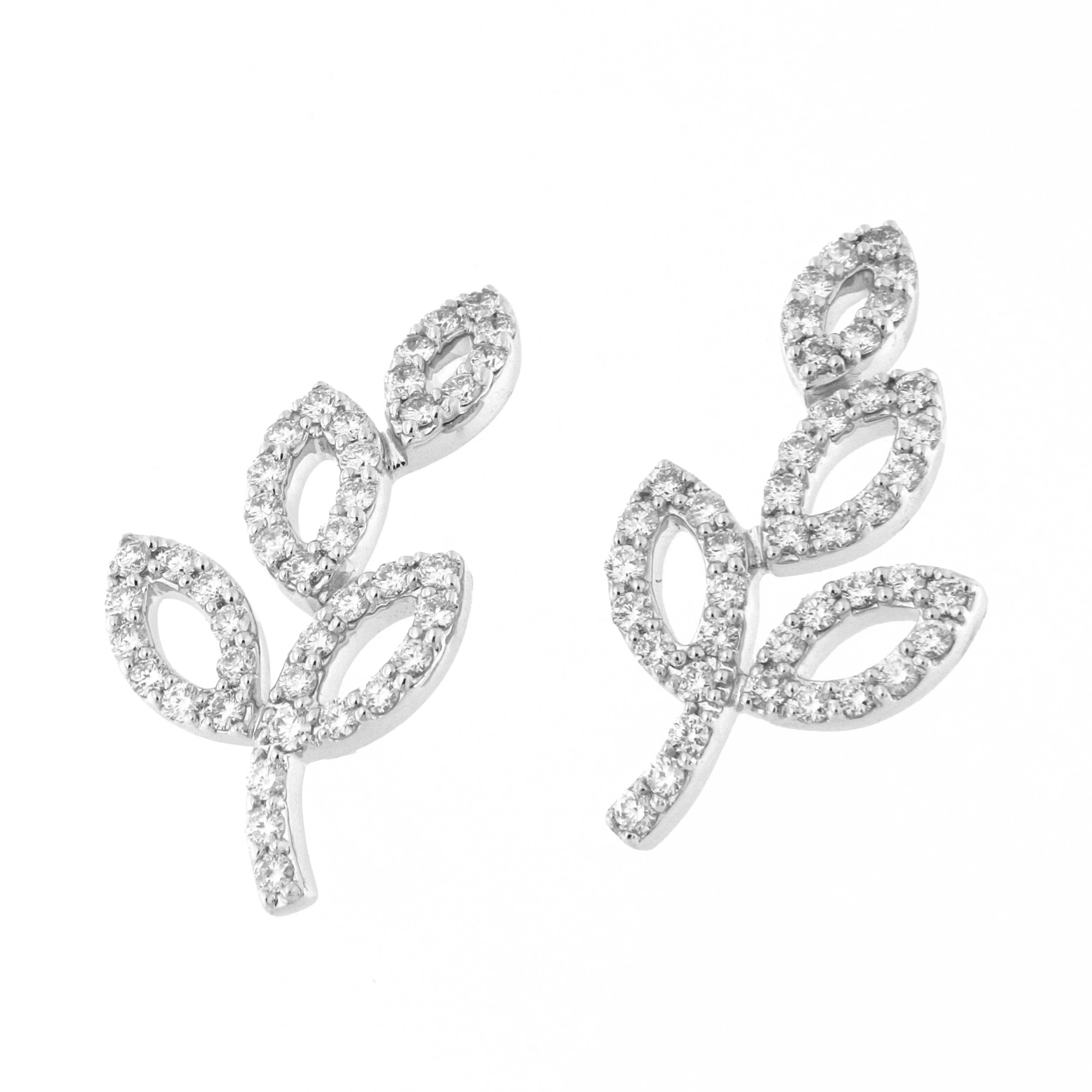 Collection Leaves and crossed Earring Gold, Diamond 0.70 ct, climbers