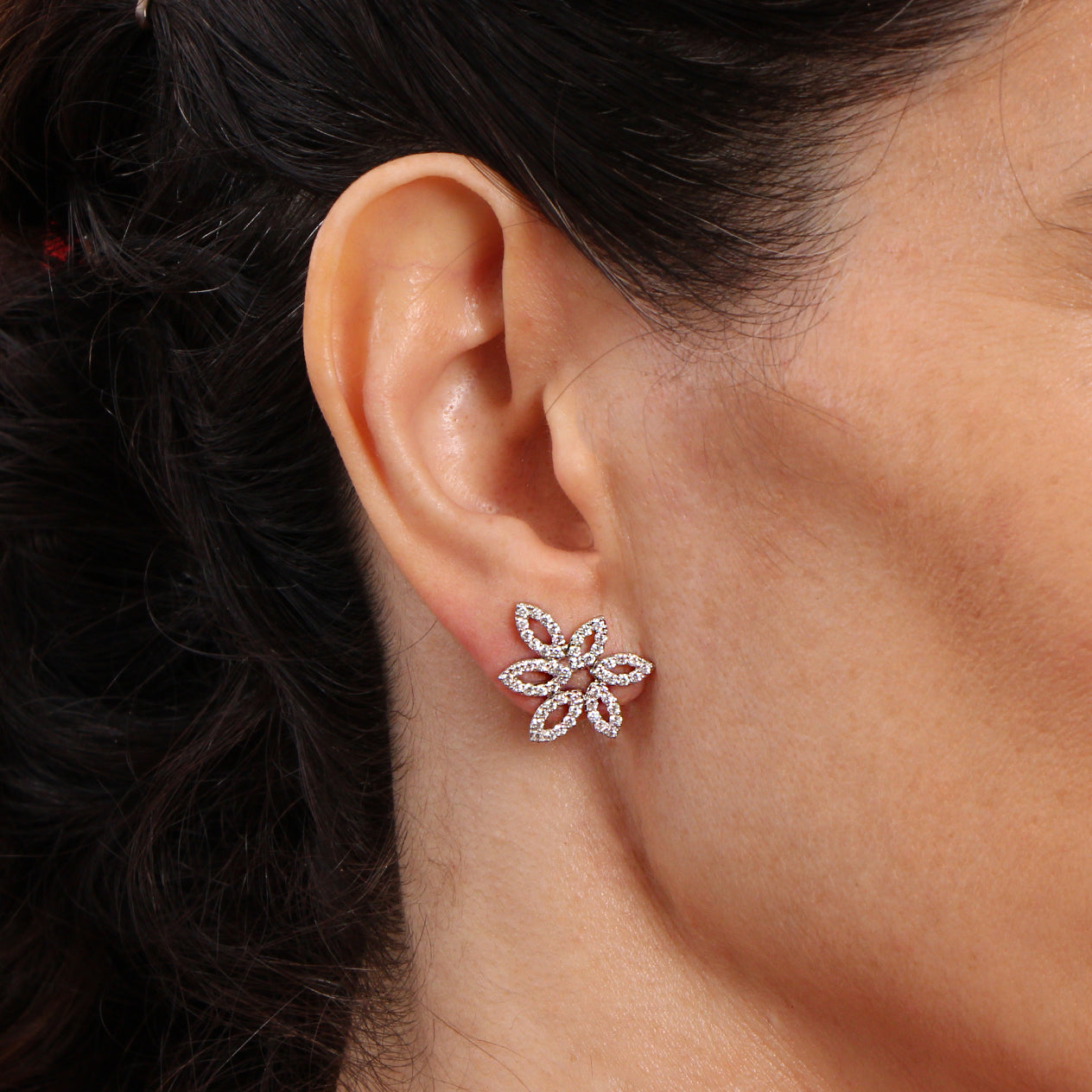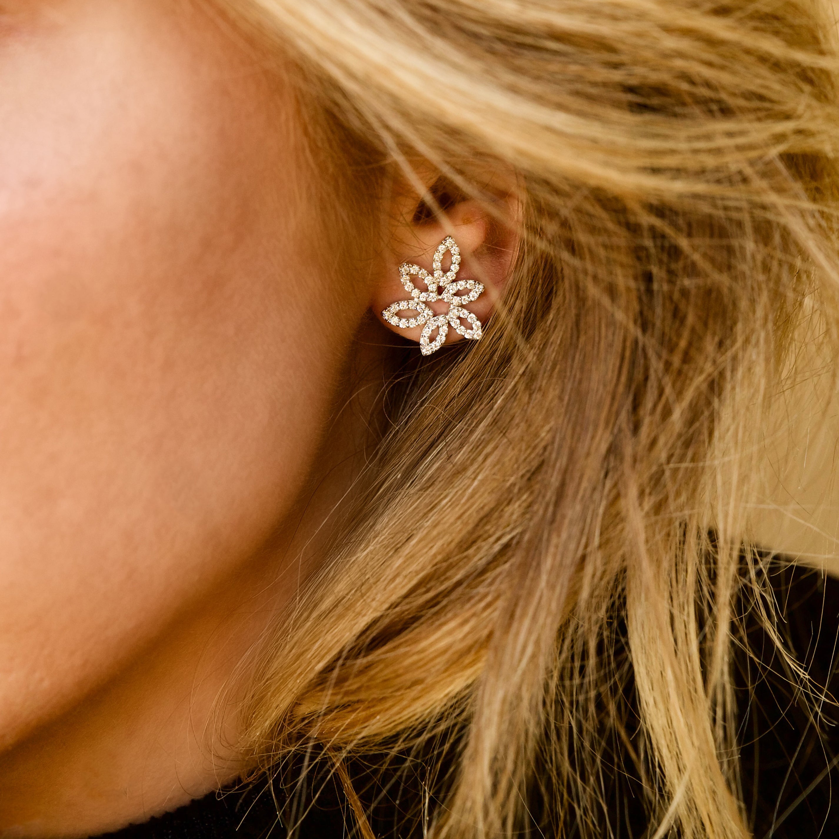 18K white gold earring, diamond color GH, clarity SI 1.06 ct, 108 stones, pressure clasp