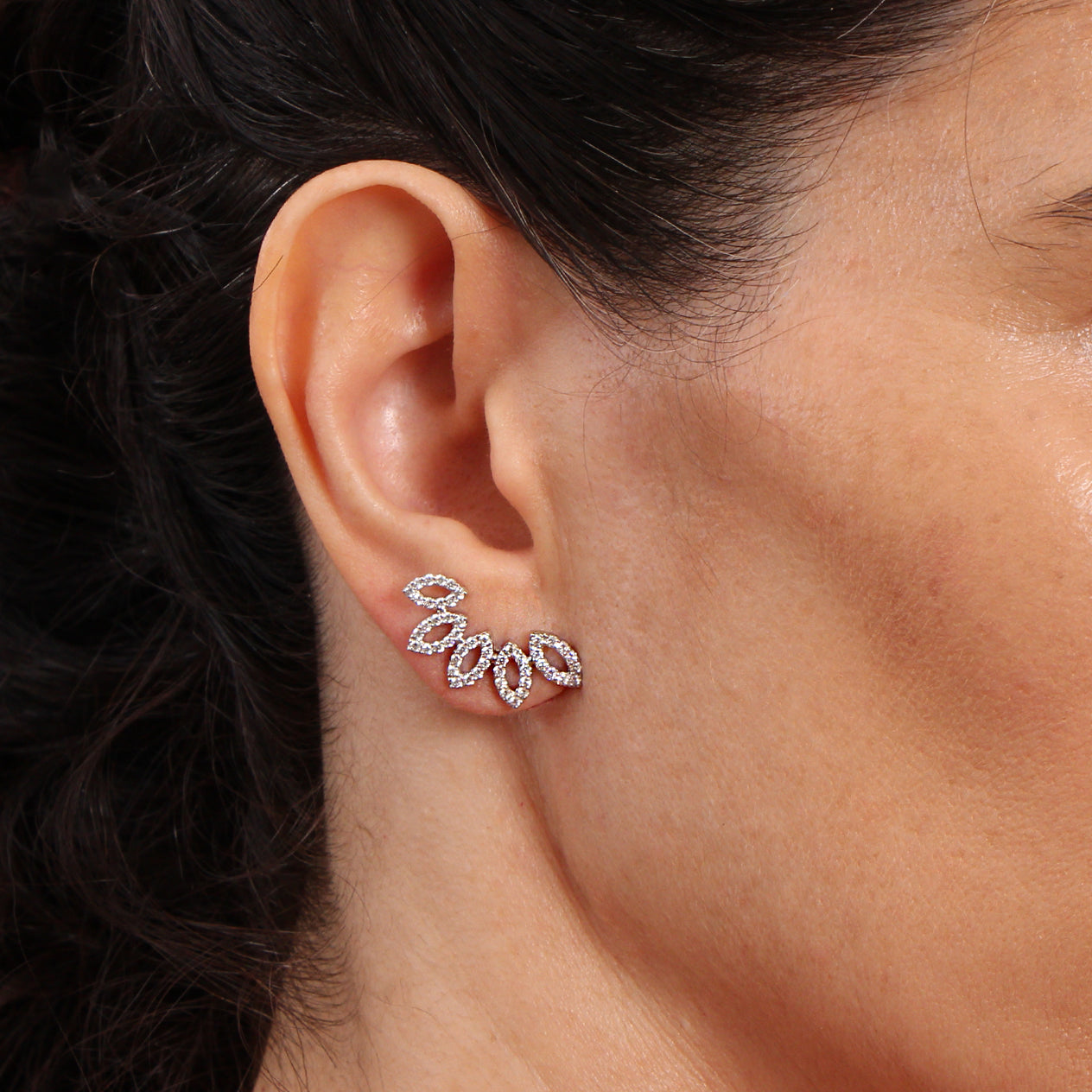 Collection Leaves and crossed Earring Gold, Diamond 0.88 ct, climbers
