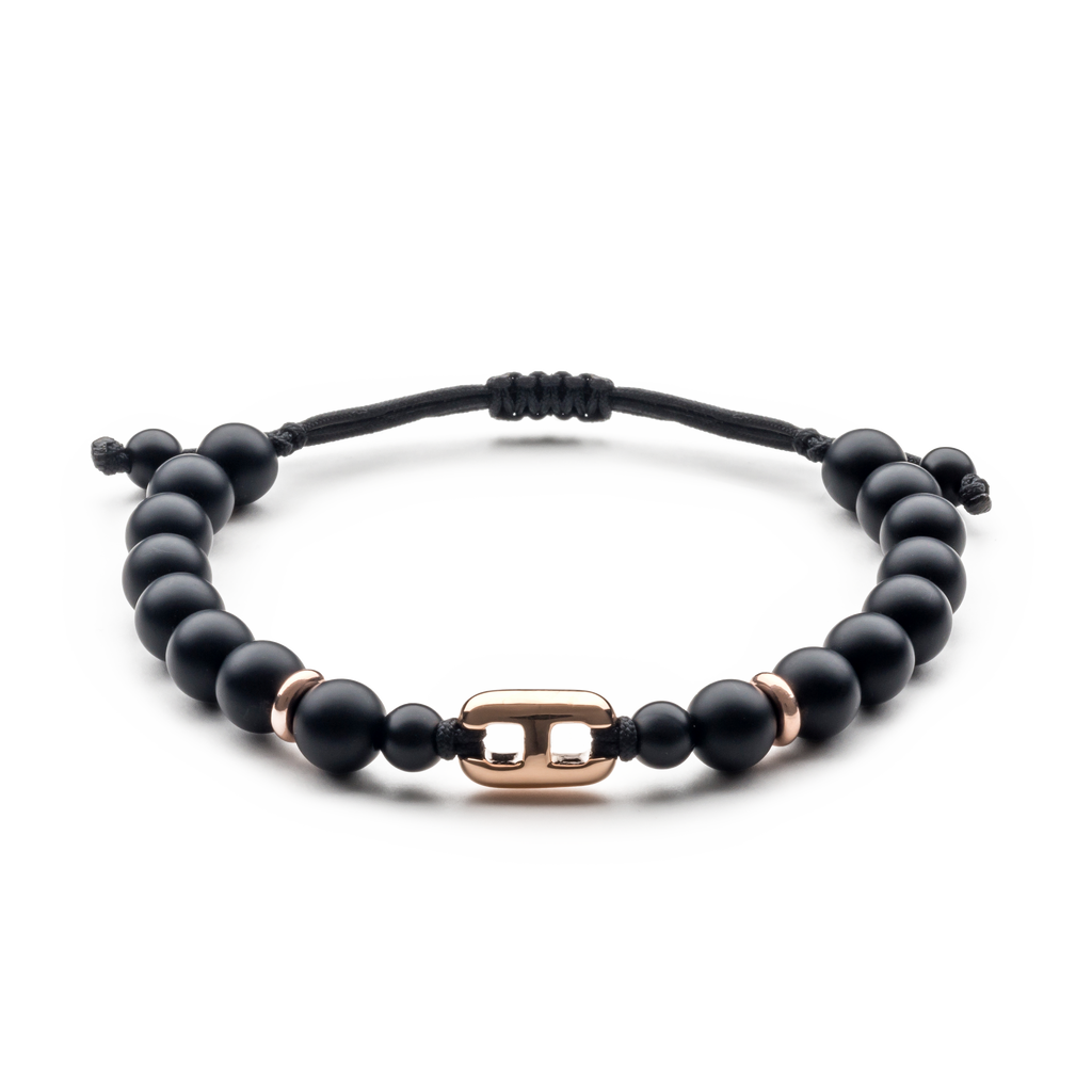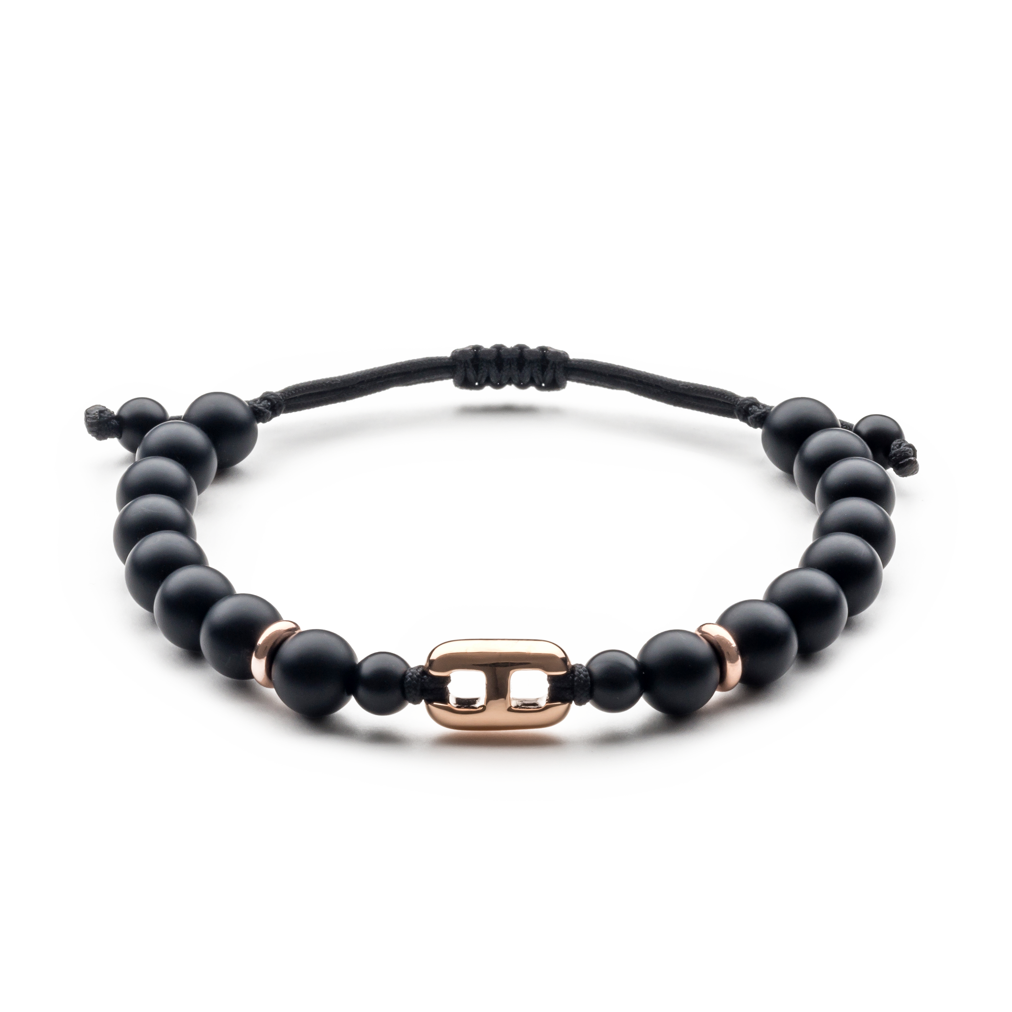 18K rose gold bracelet, onyx, link, Adjustable nylon cord from 15cm to 25cm
