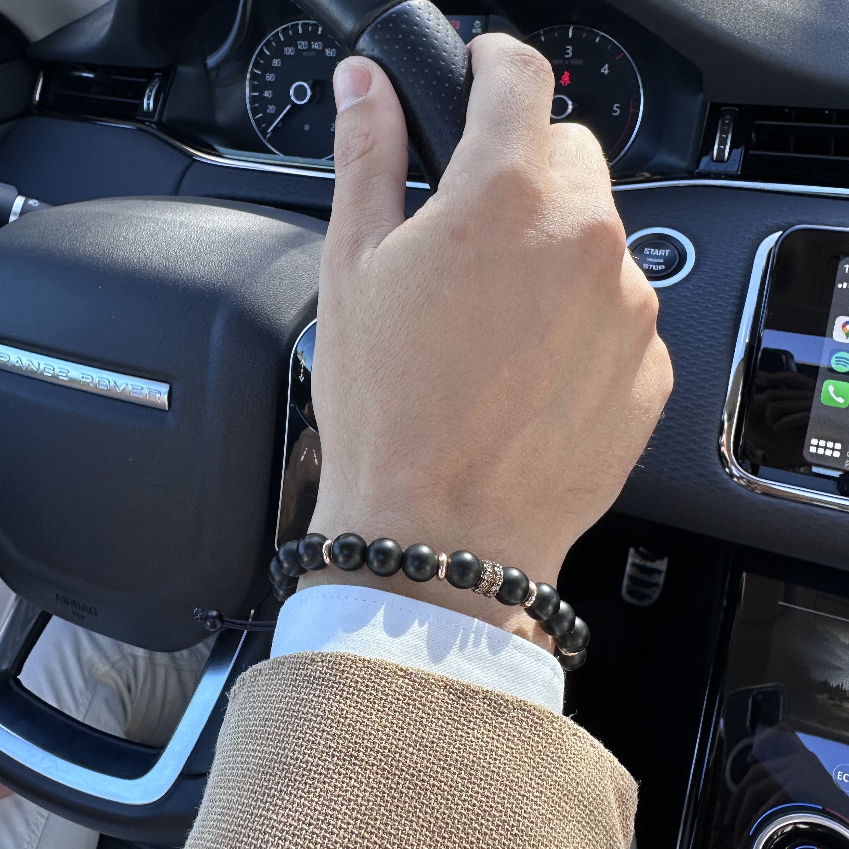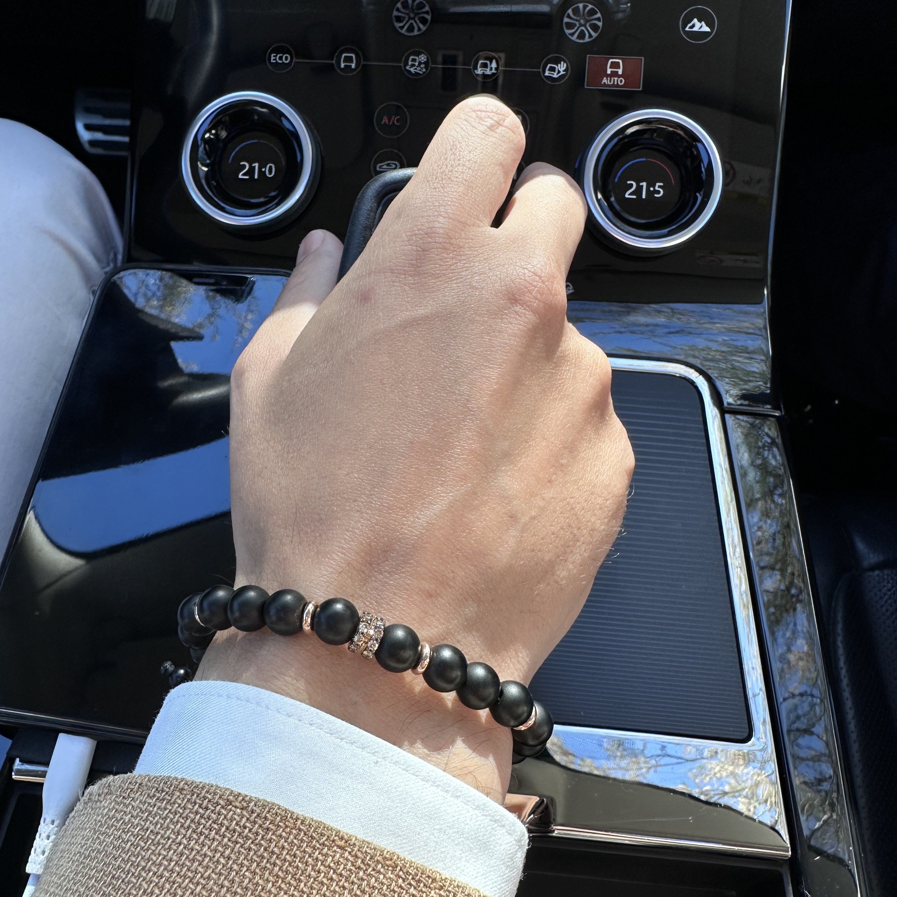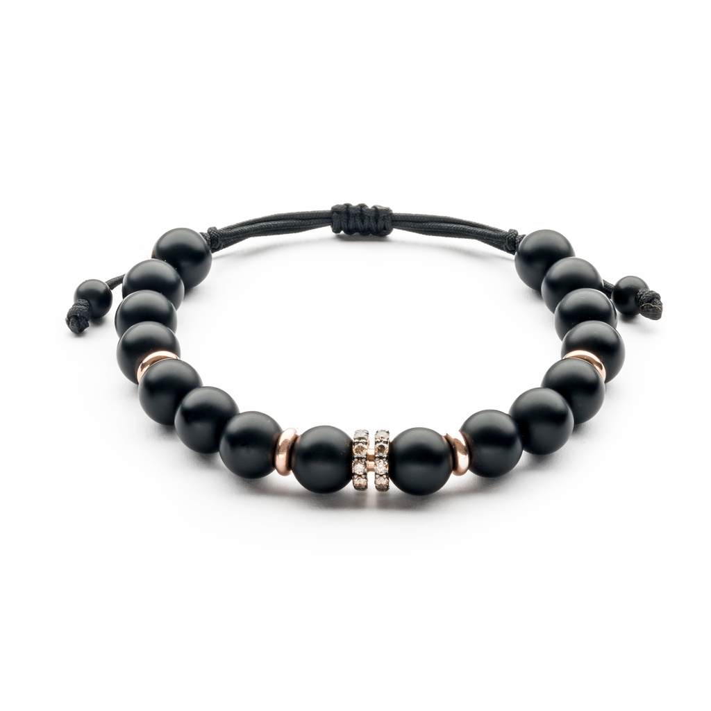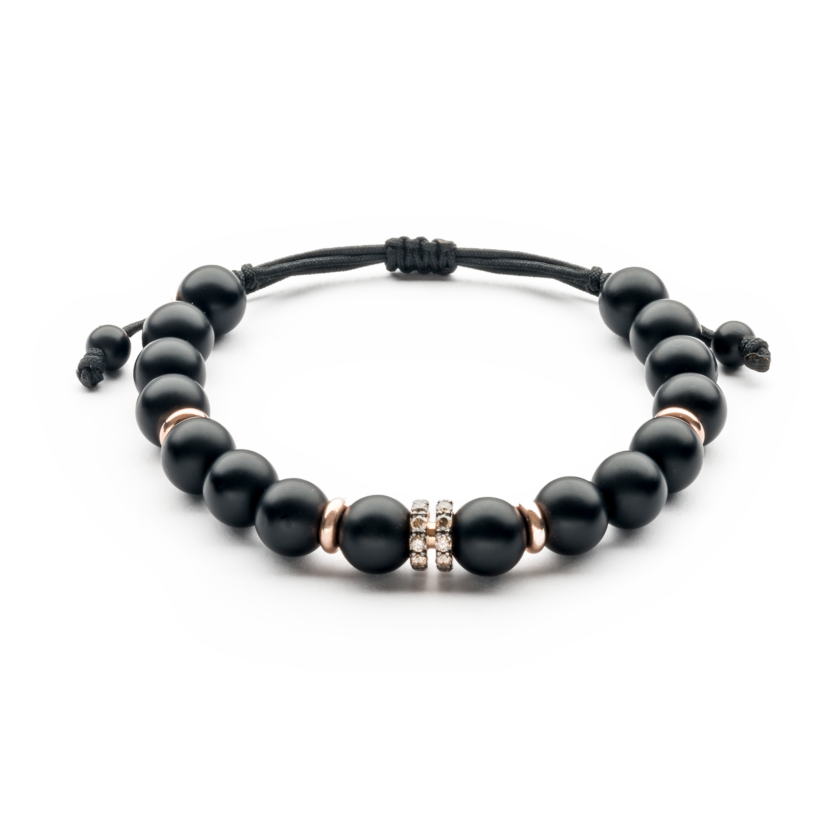 18K rose gold bracelet, onyx, 20 stones, double-wheel brown diamond, Adjustable nylon cord from 15cm to 25cm
