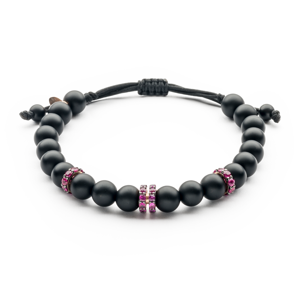 18K rose gold bracelet, onyx, double-wheel ruby, Adjustable nylon cord from 15cm to 25cm