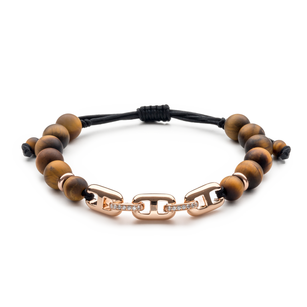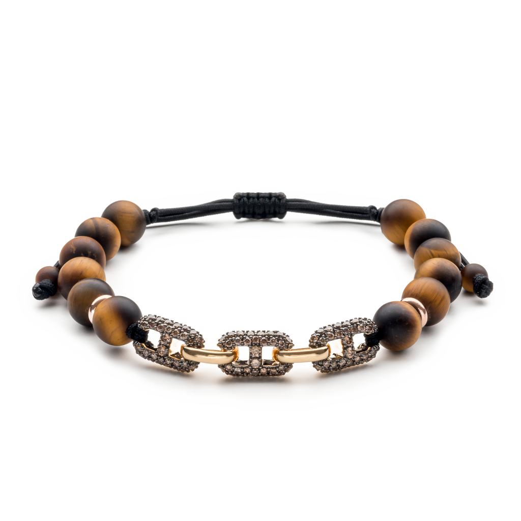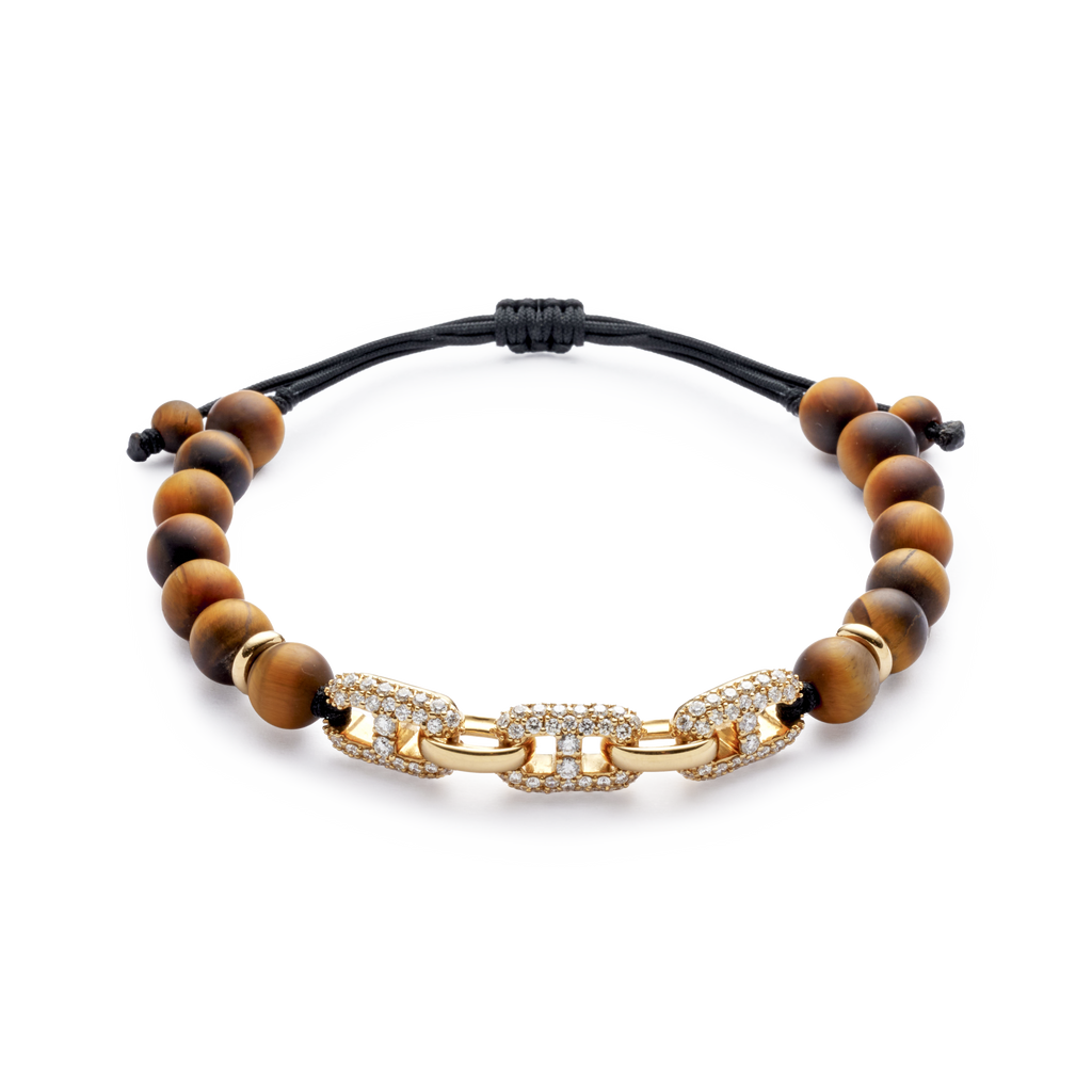Collection Wolf Big Bracelets Gold, Tiger eye, small beads