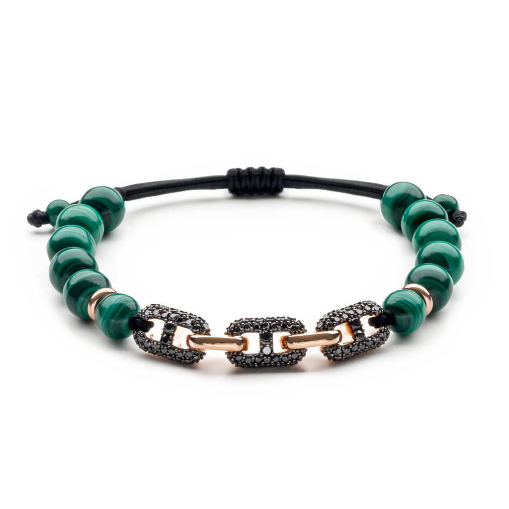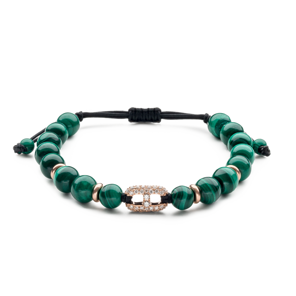 Collection Wolf Big Bracelets Gold, Malachite, large beads