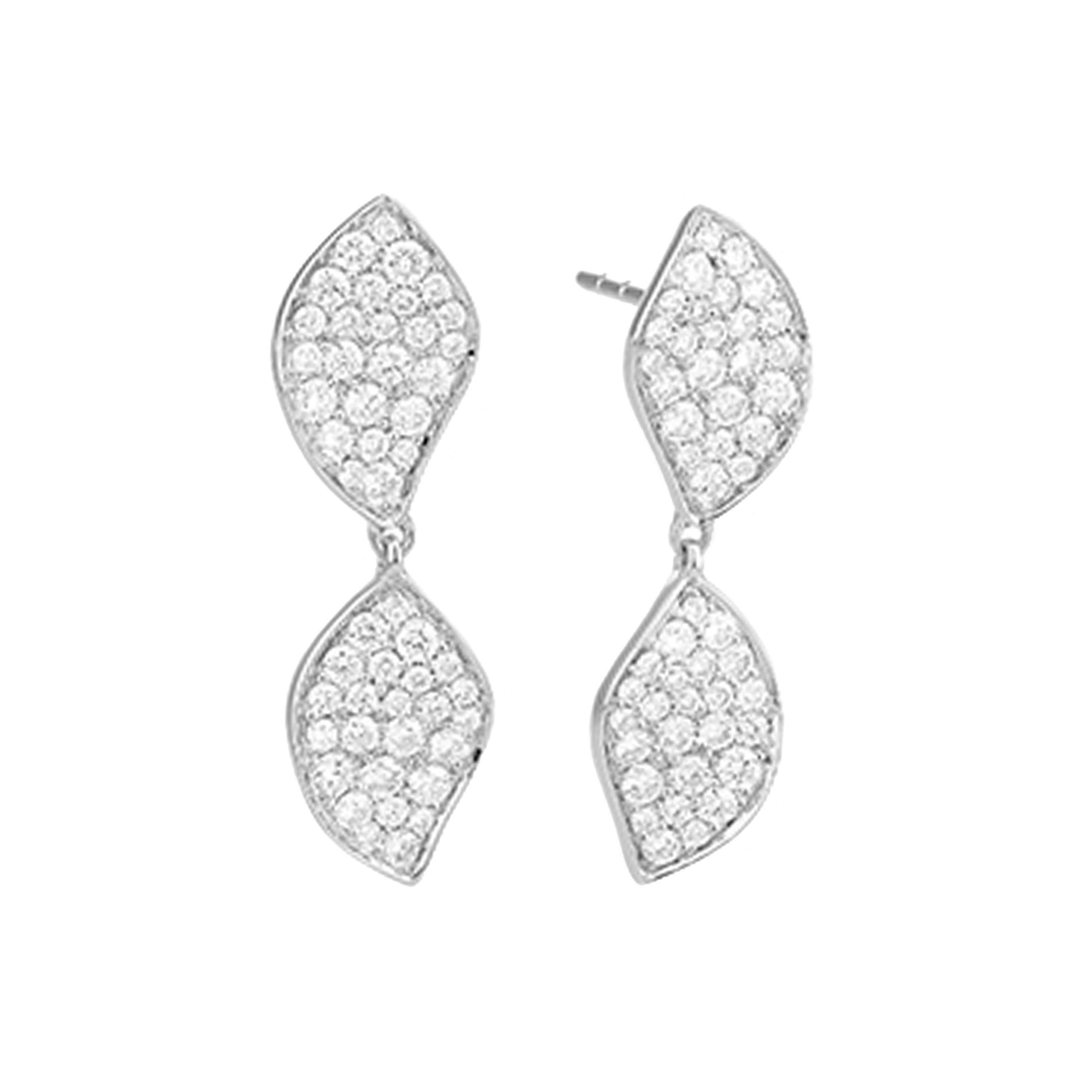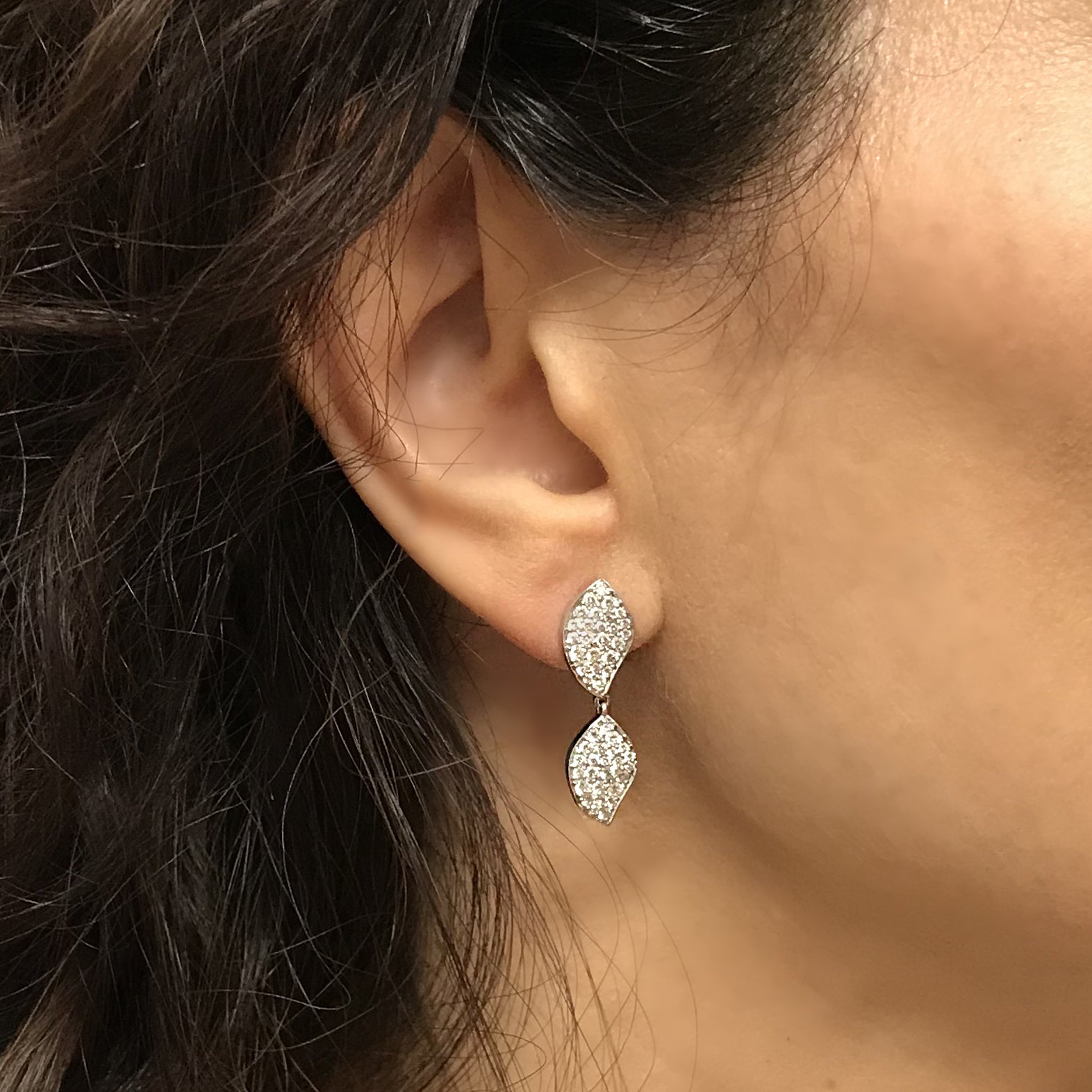 18K white gold earring, diamond color GH, clarity SI 1.22 ct, 110 stones, pressure clasp
