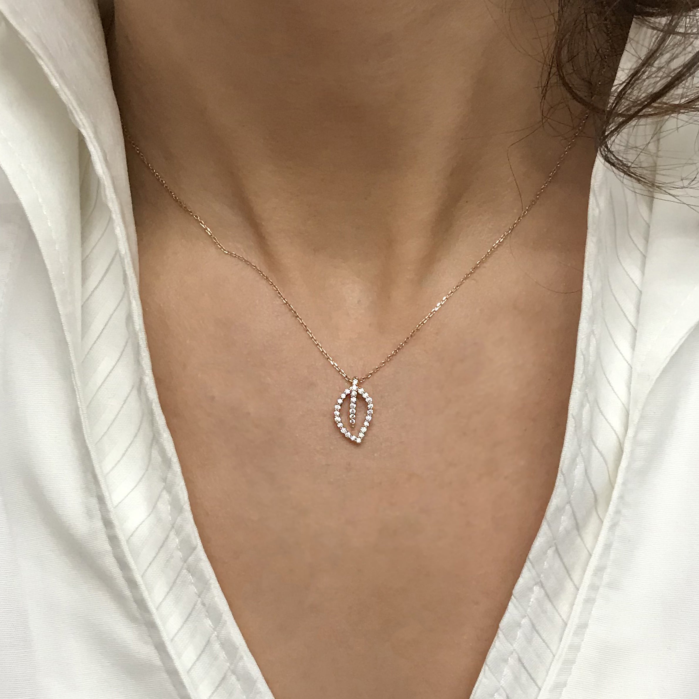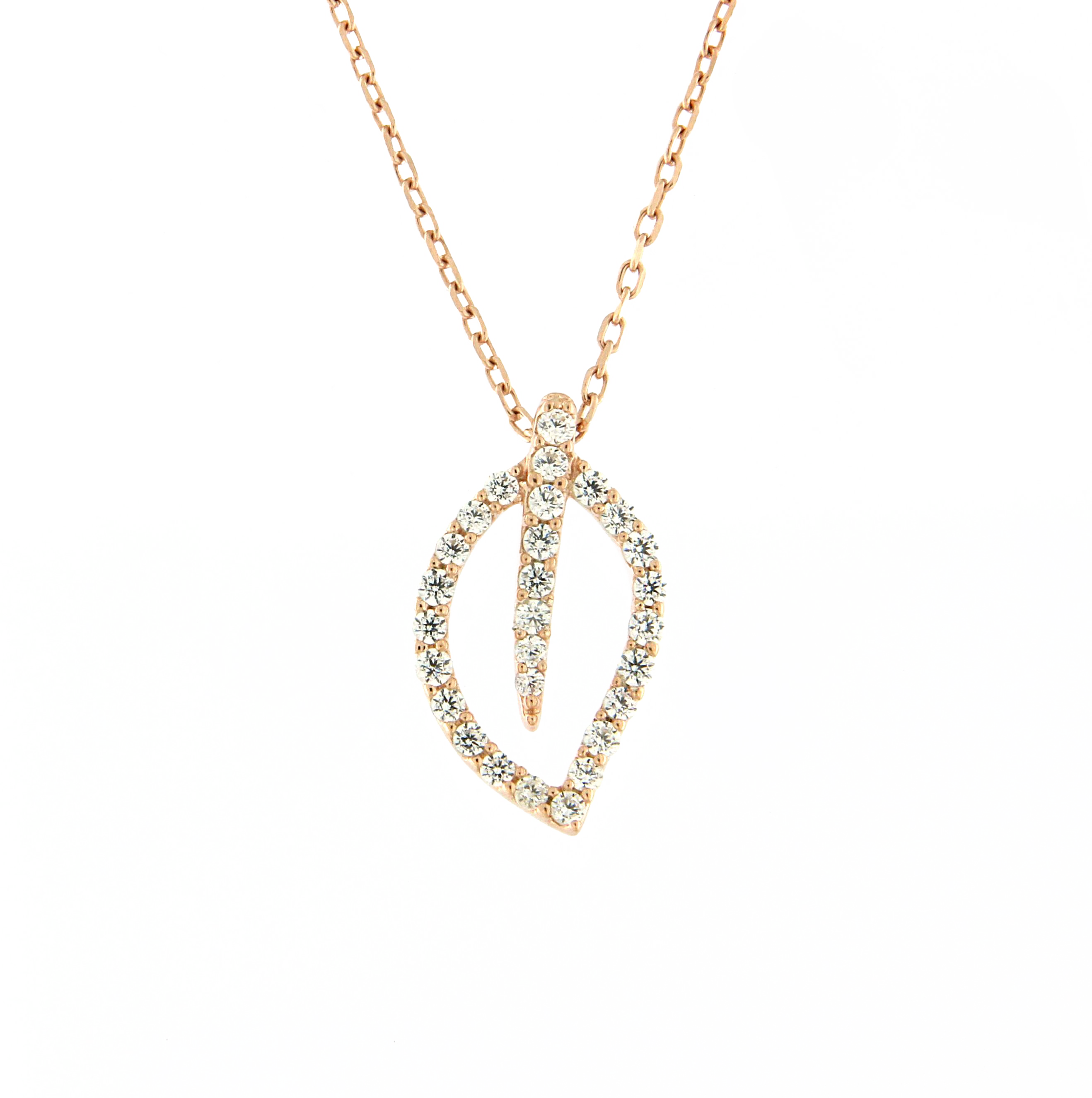 18K rose gold pendant, diamond color GH, clarity SI 0.19 ct, 28 stones, 42cm rolo chain lobster clasp