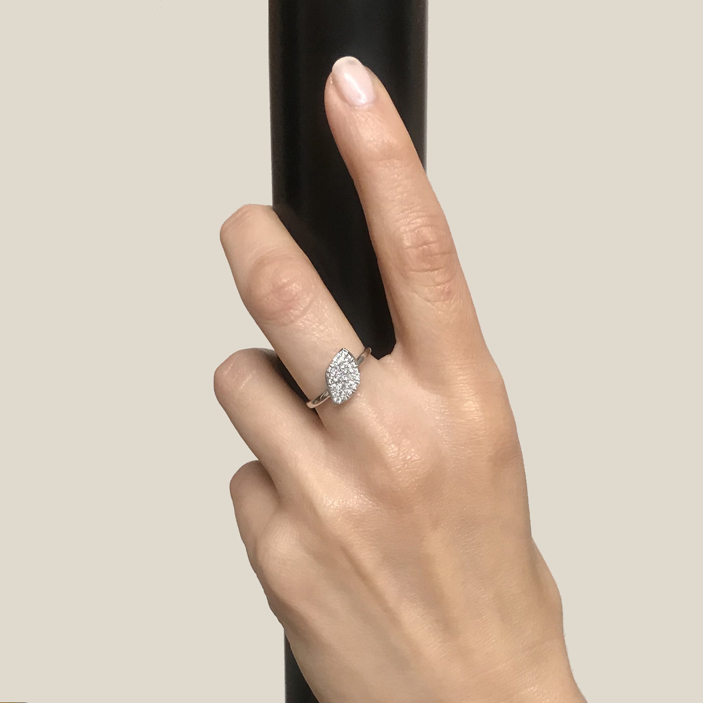 18K white gold ring, diamond color GH, clarity SI 0.31 ct, 25 stones