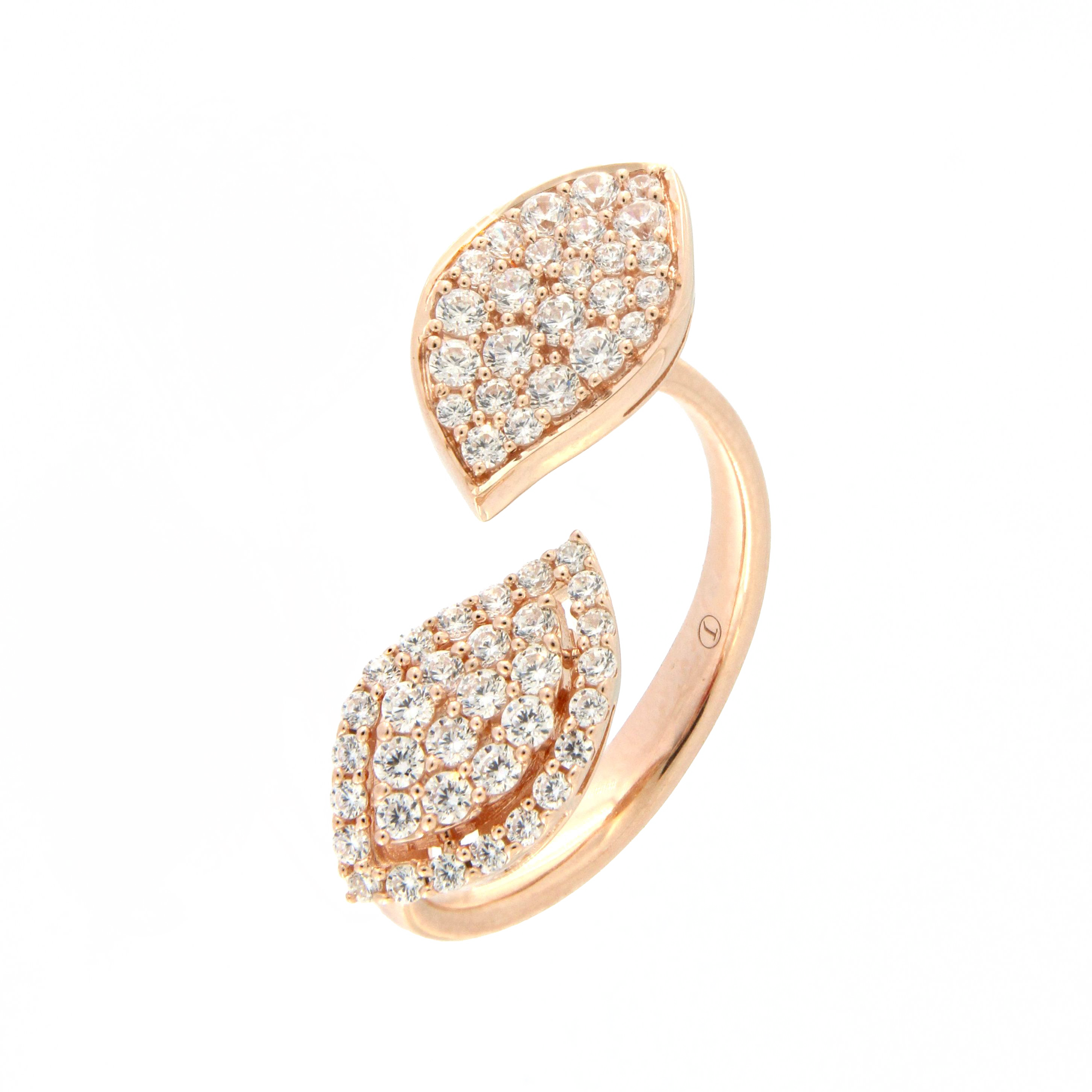 Collection Leaves and crossed Ring Gold, Diamond 0.69 ct, designer