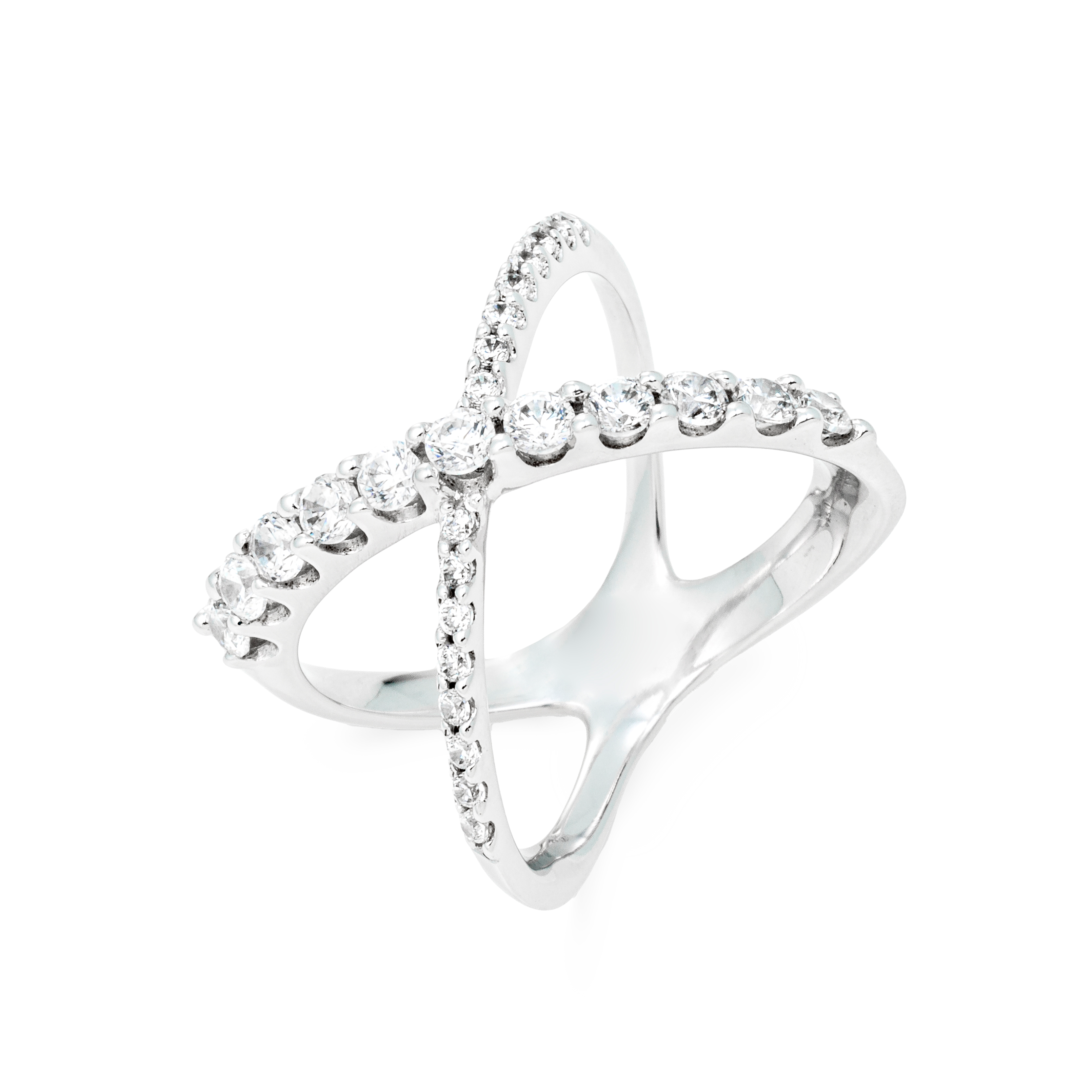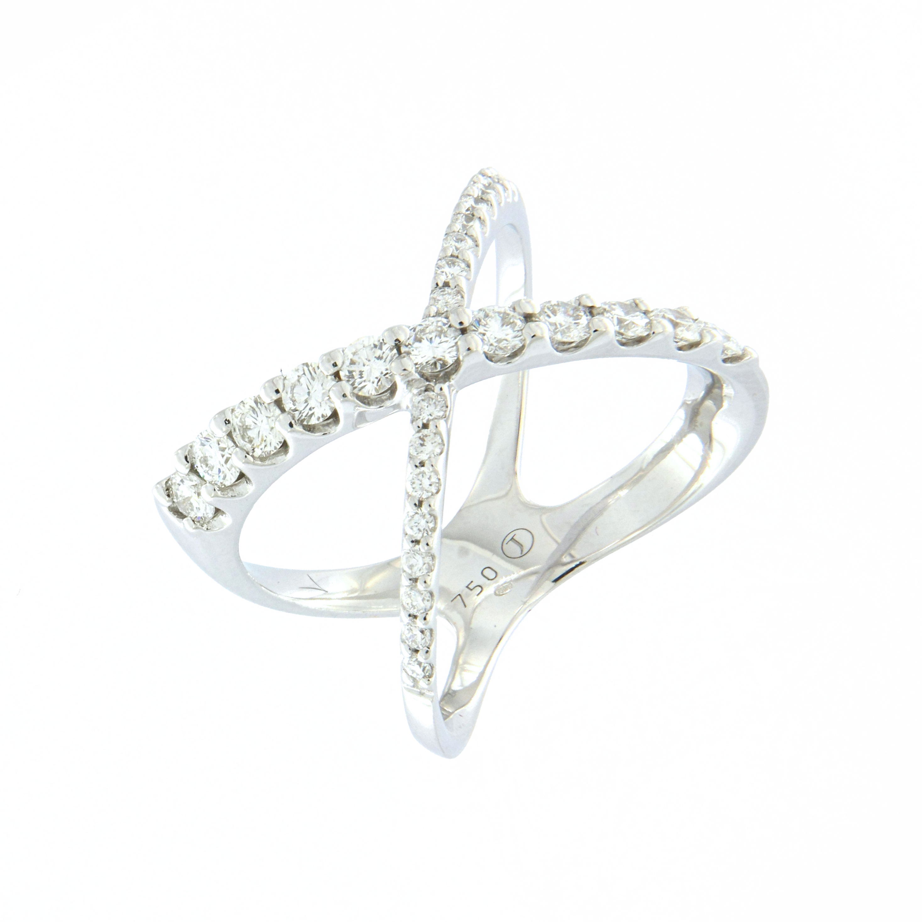 18K white gold ring, diamond color GH, clarity SI 0.79 ct, 27 stones