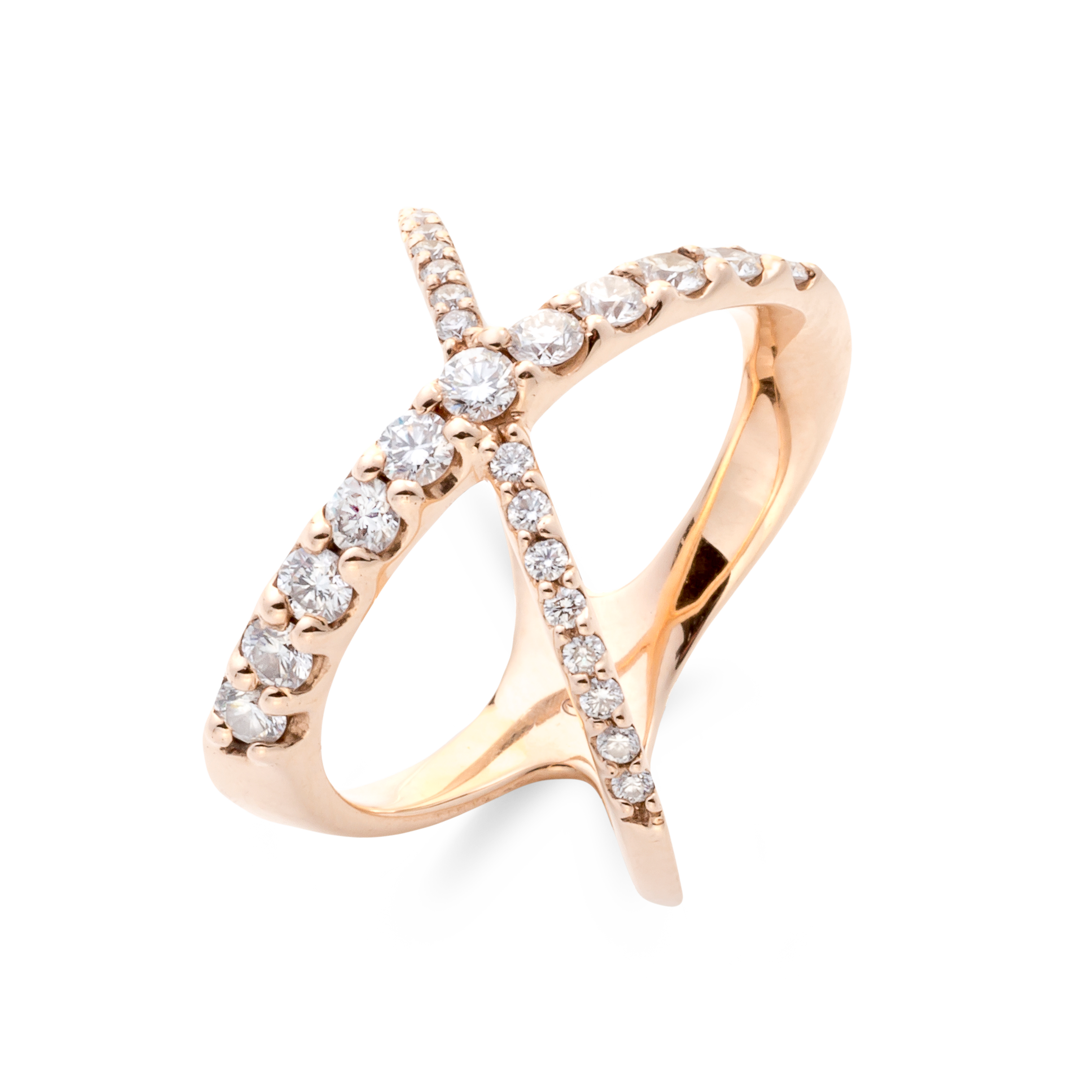 18K rose gold ring, diamond color GH, clarity SI 0.82 ct, 27 stones