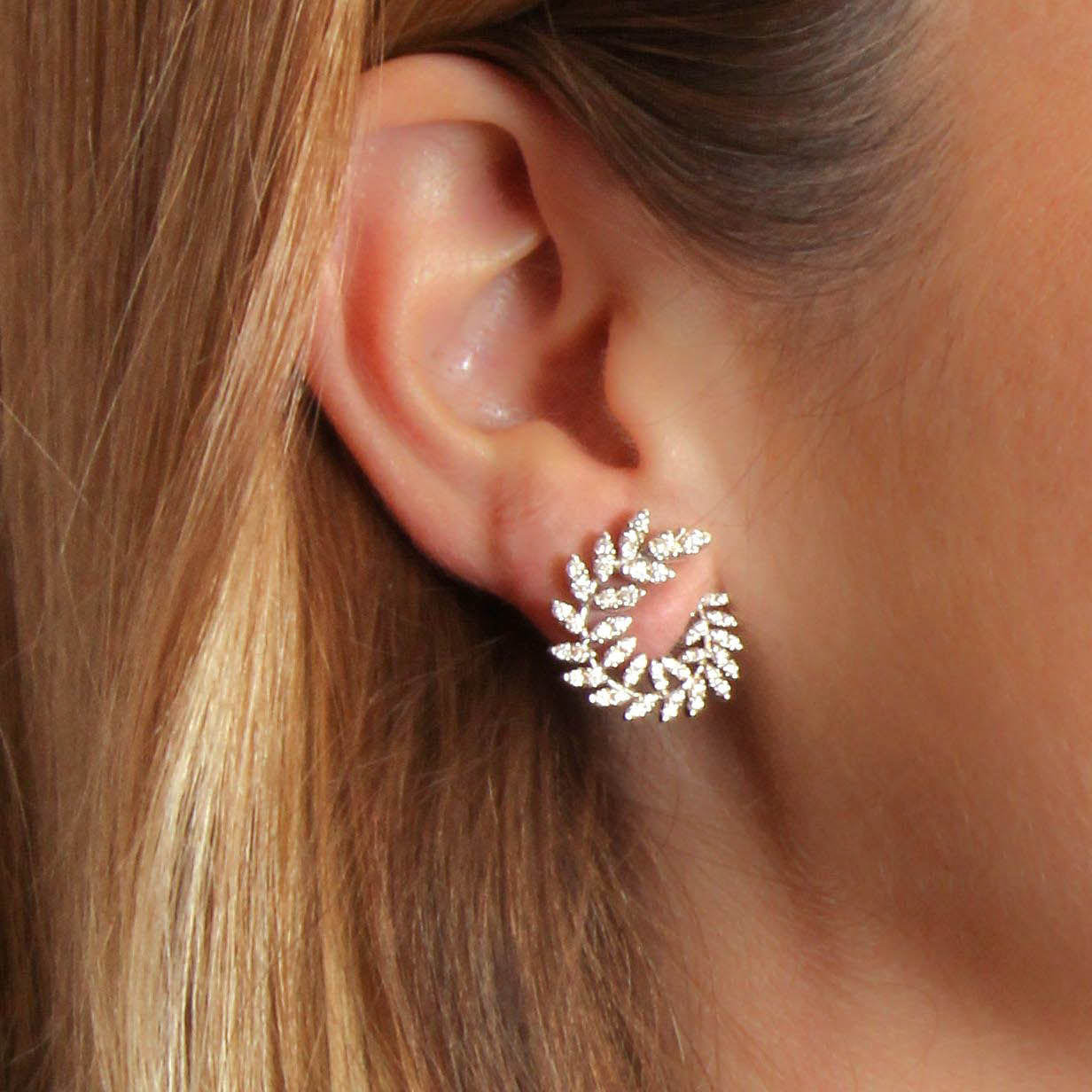 Collection Leaves and crossed Earring Gold, Diamond 1.12 ct, climbers
