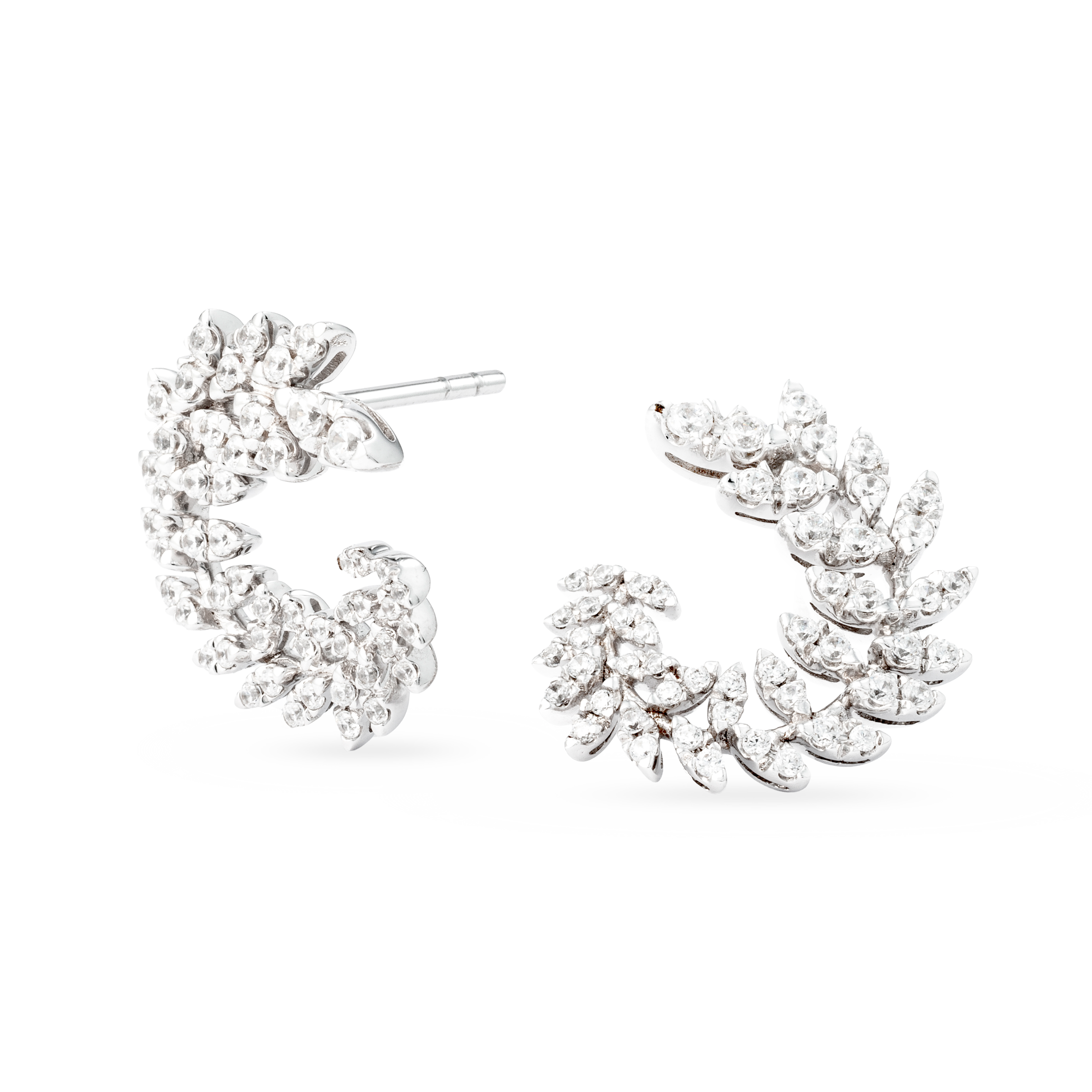 18K white gold earring, diamond color GH, clarity SI 1.12 ct, 104 stones, pressure clasp