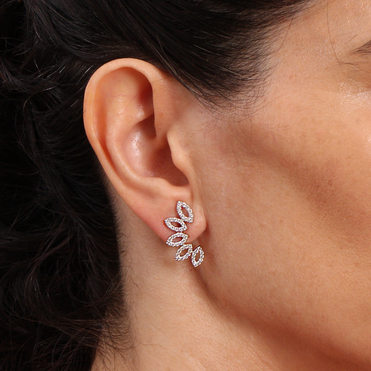 Collection Leaves and crossed Earring Gold, Diamond 0.88 ct, climbers