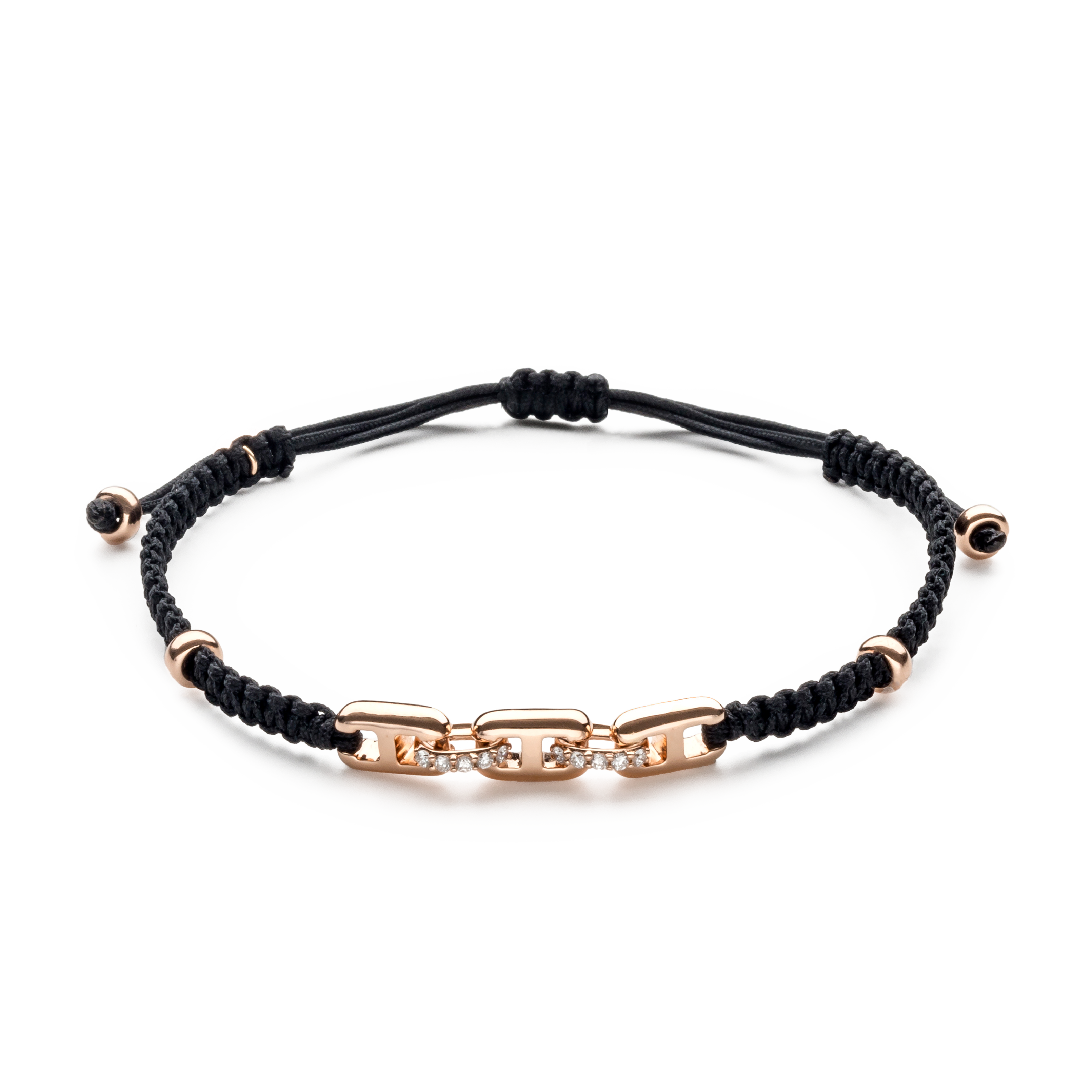 18K rose gold bracelet, 10 stones, triple diamond link, Adjustable nylon cord from 15cm to 25cm