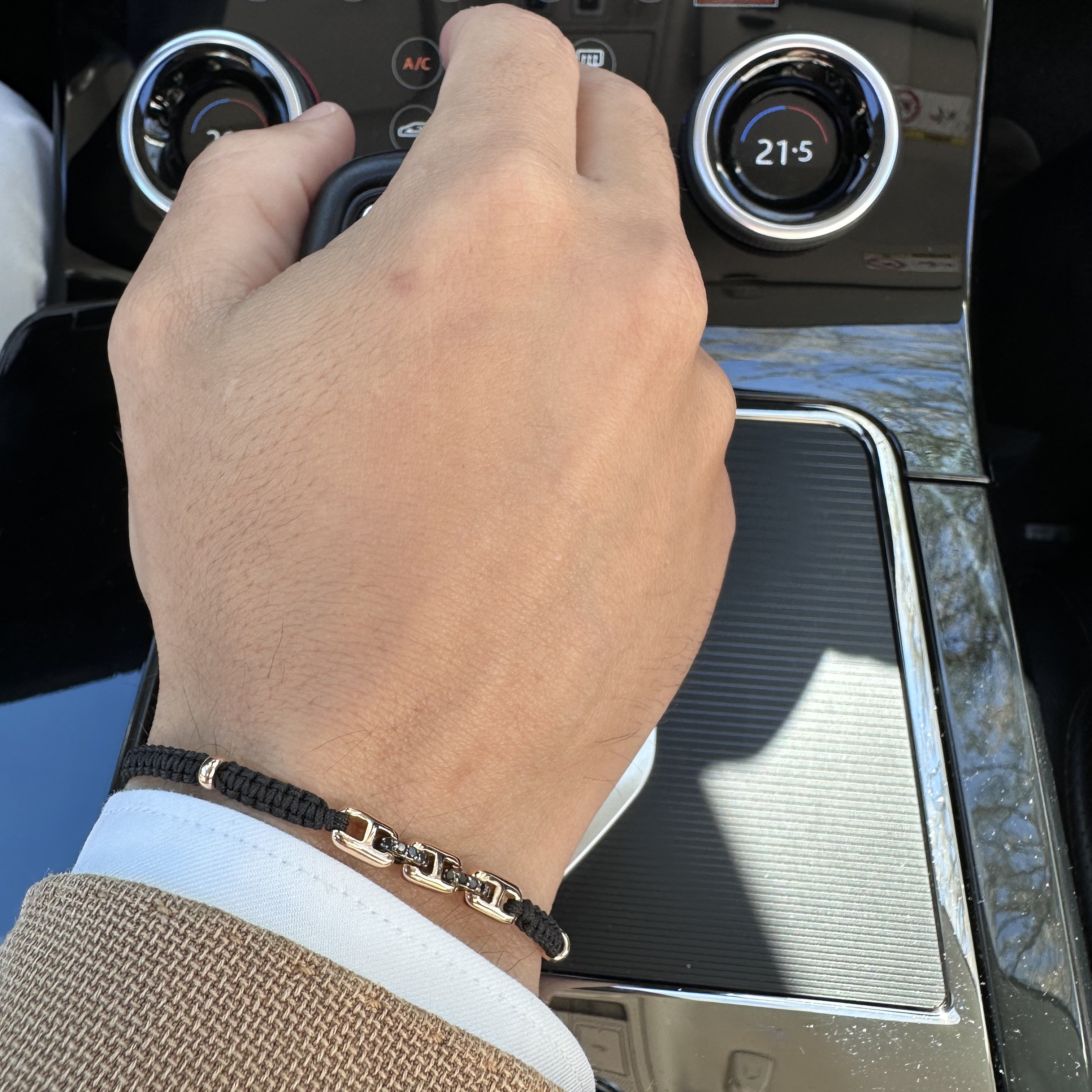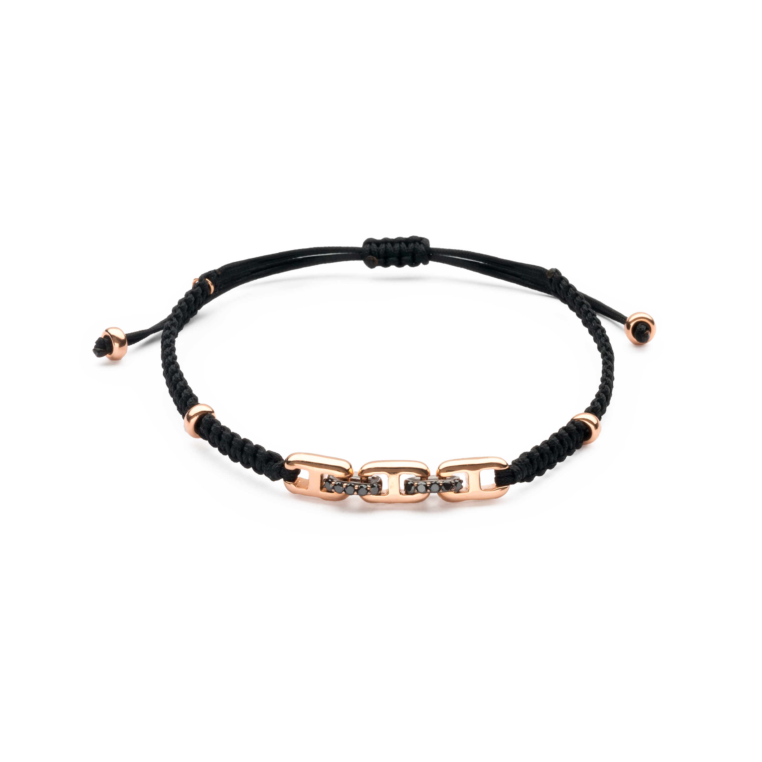 18K rose gold bracelet, 10 stones, triple black diamond link, Adjustable nylon cord from 15cm to 25cm