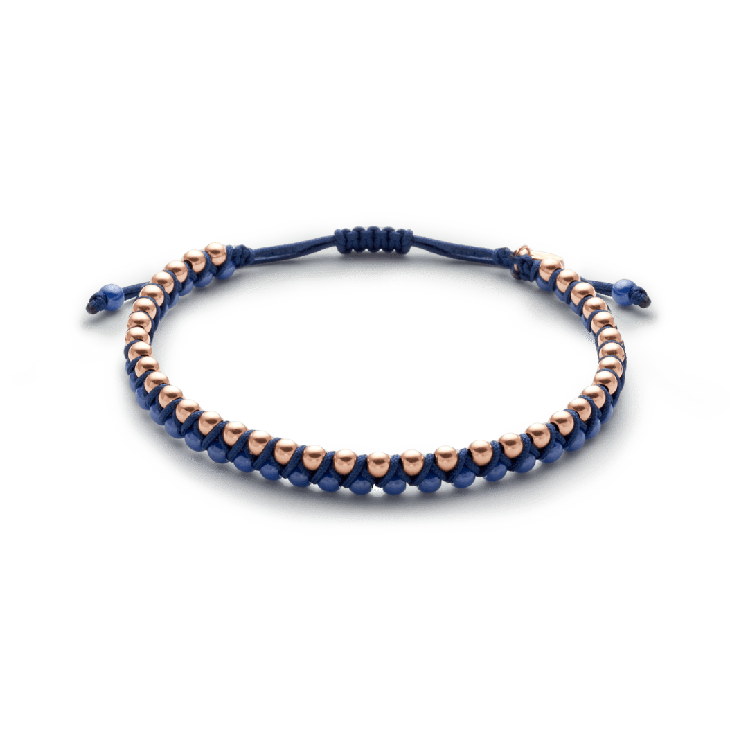 18K rose gold bracelet, 3mm bead, Adjustable nylon cord from 15cm to 25cm