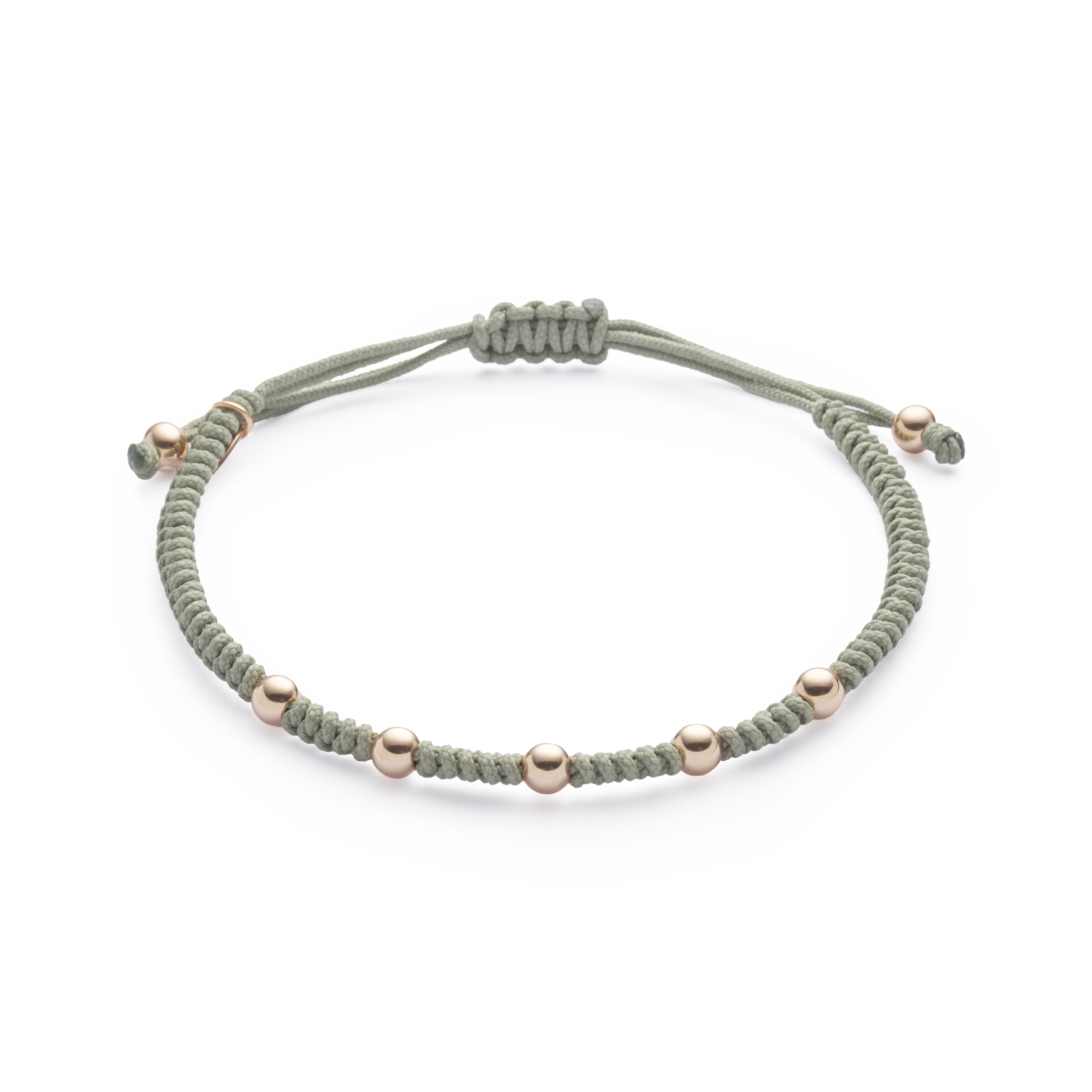 18K rose gold bracelet, 4mm bead, Adjustable nylon cord from 15cm to 25cm