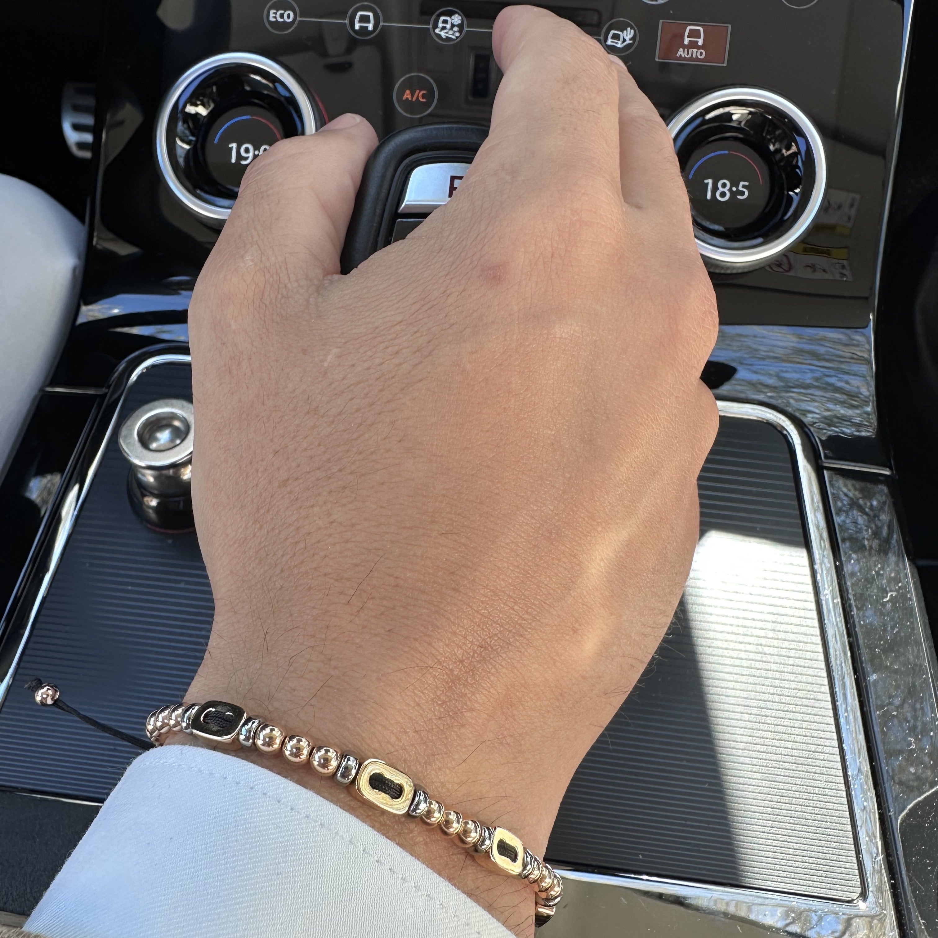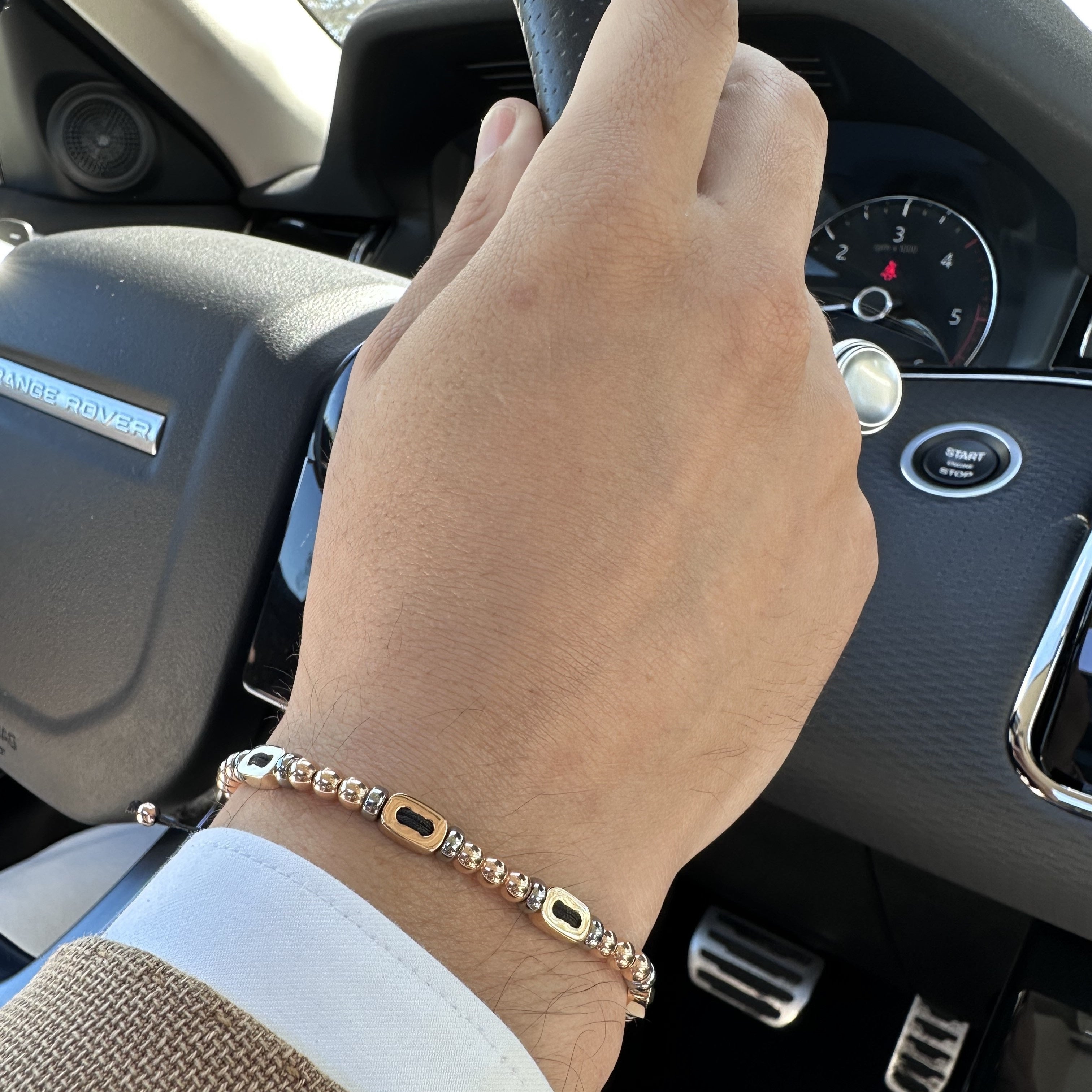 18K rose gold bracelet, smooth link 4mm bead, Adjustable nylon cord from 15cm to 25cm
