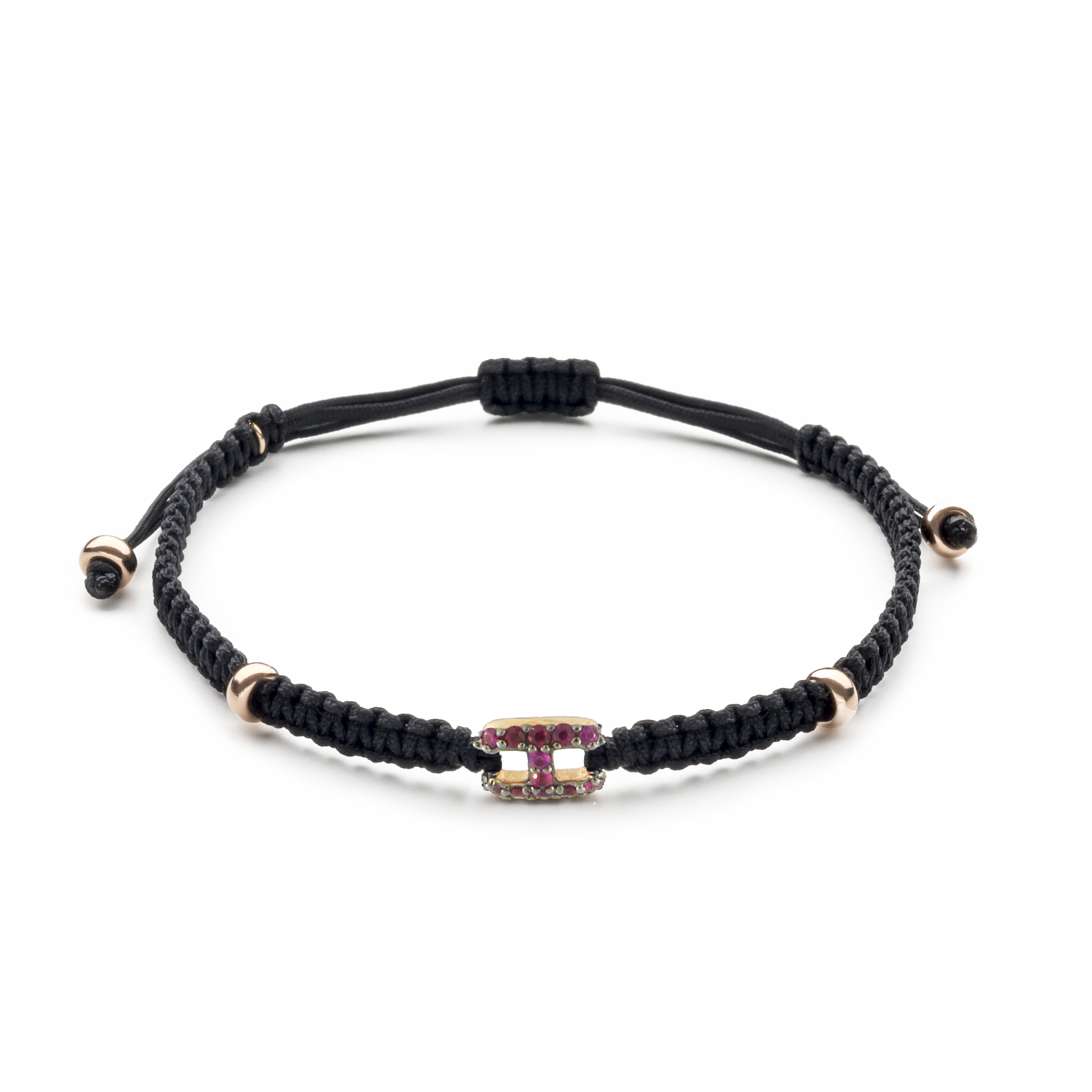 18K rose gold bracelet, ruby link, Adjustable nylon cord from 15cm to 25cm