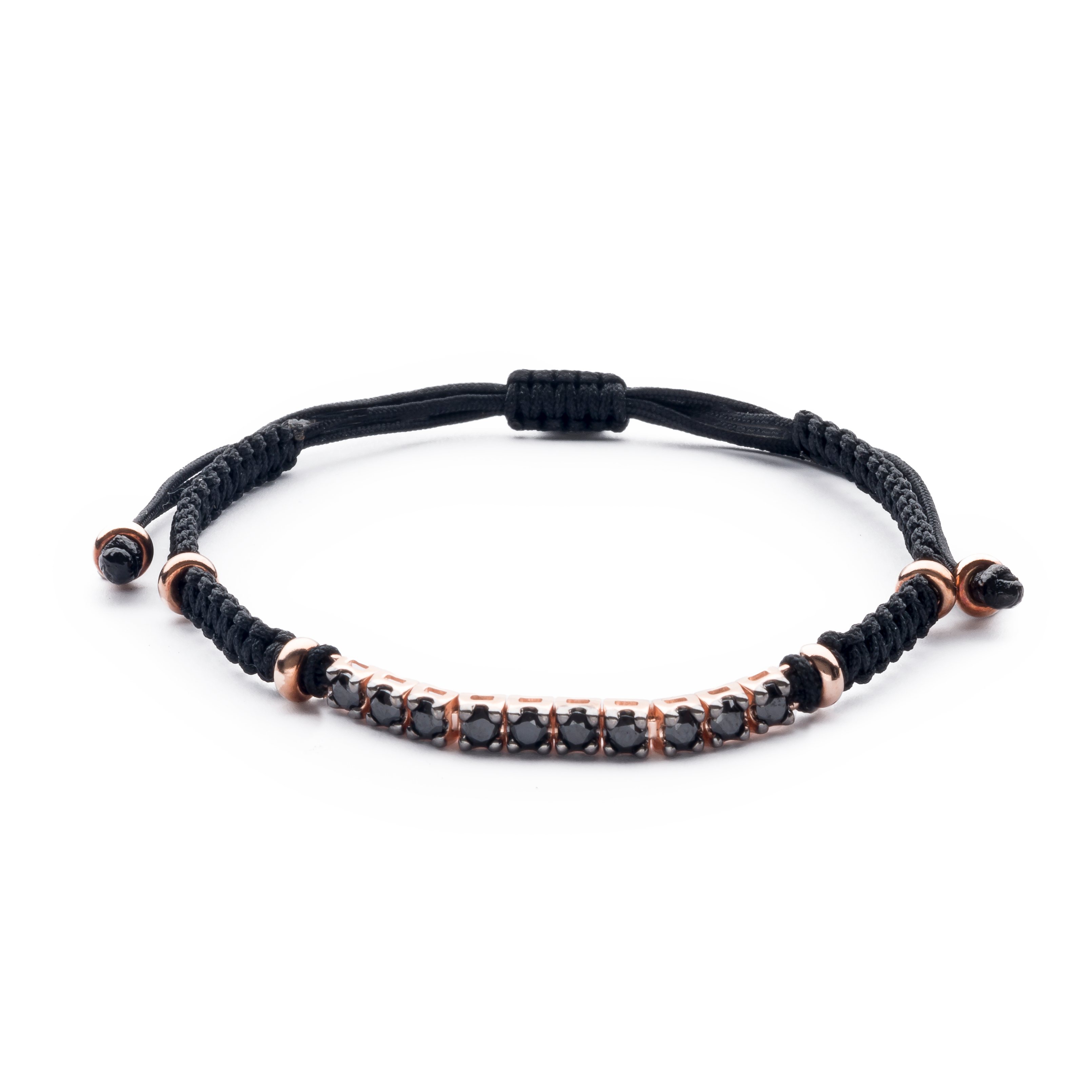 18K rose gold bracelet, 10 stones, black diamond riviere