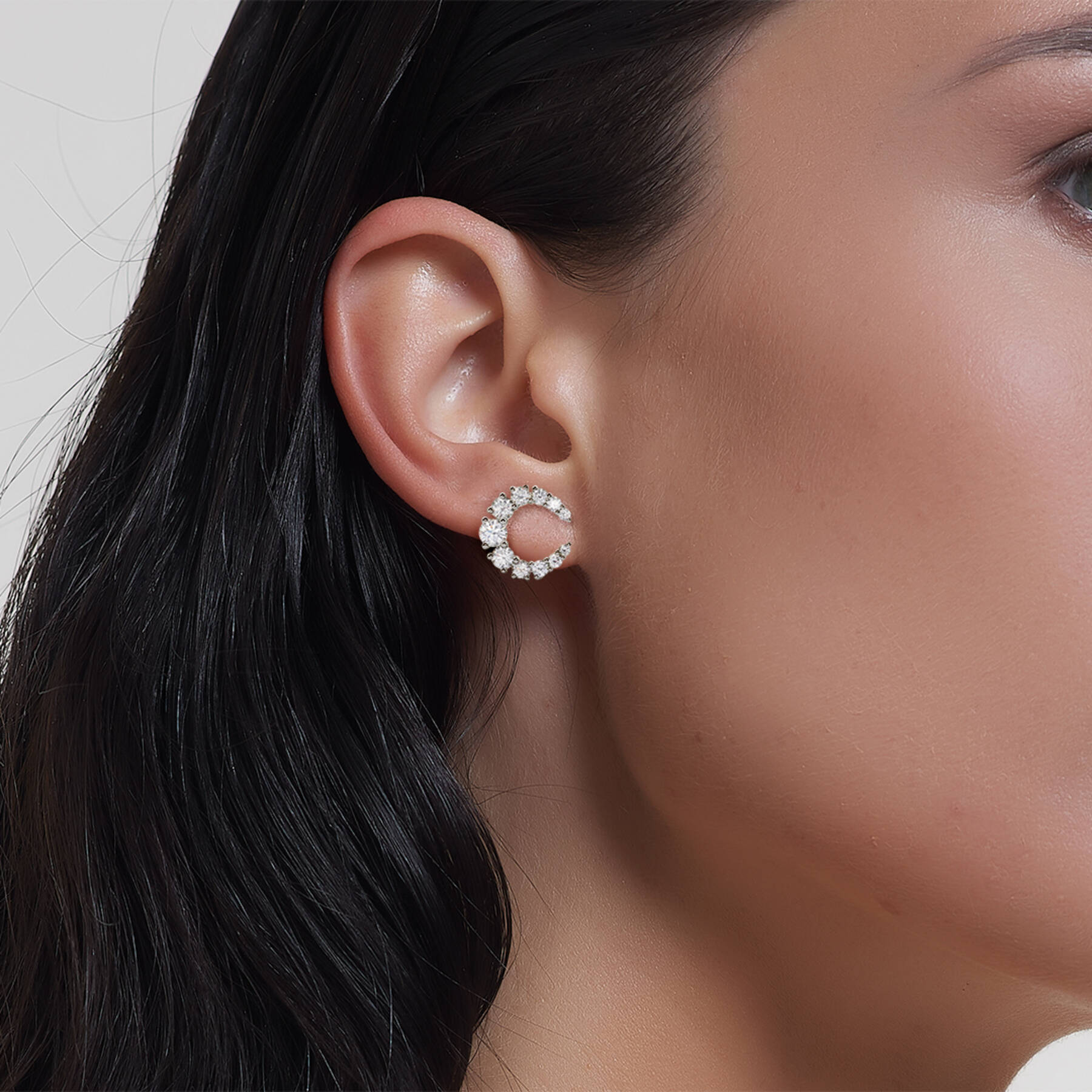 18K white gold earring, diamond color GH, clarity SI 2.02 ct, 22 stones, pressure clasp