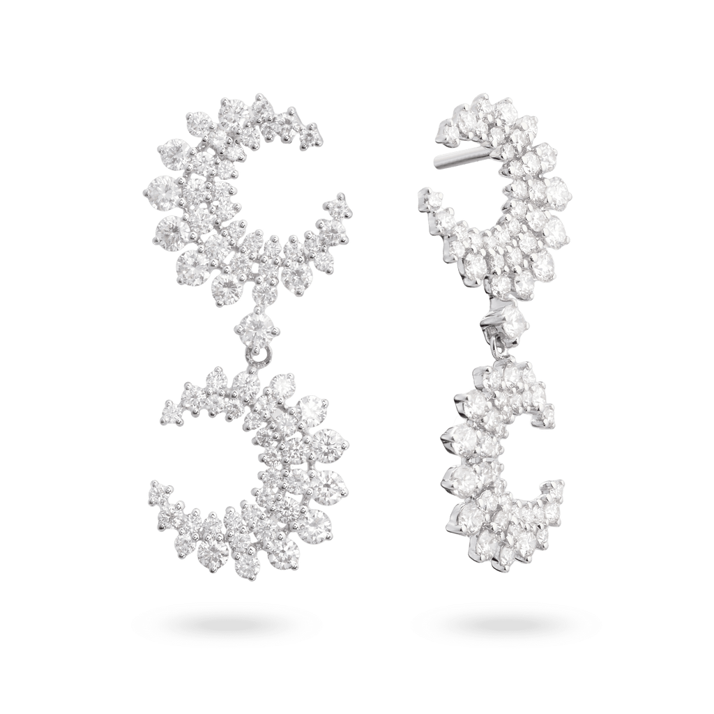 18K white gold earring, diamond color GH, clarity SI 2.42 ct, 134 stones, pressure clasp