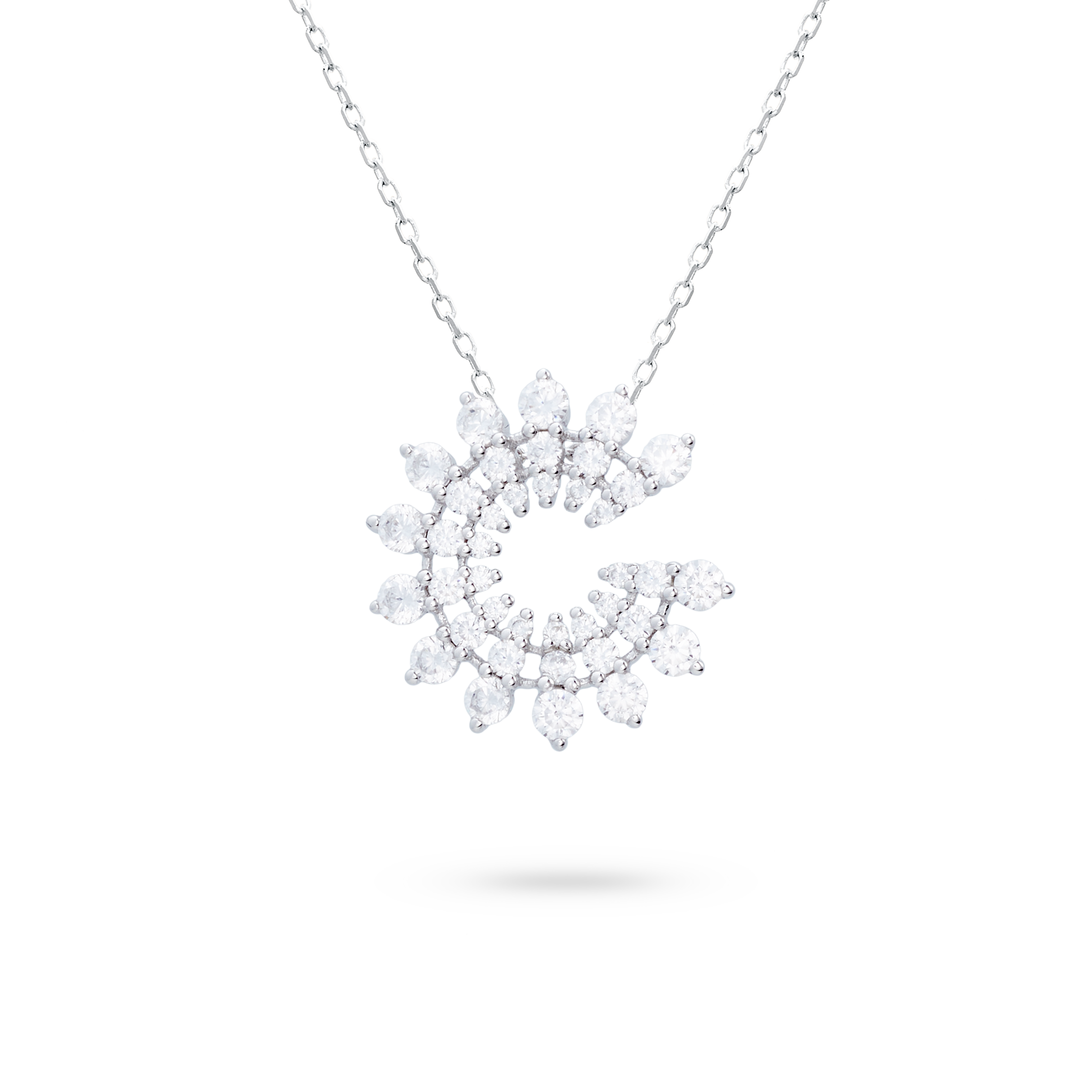 18K white gold pendant, diamond color GH, clarity SI 0.93 ct, 39 stones, 42cm forzatina chain lobster clasp