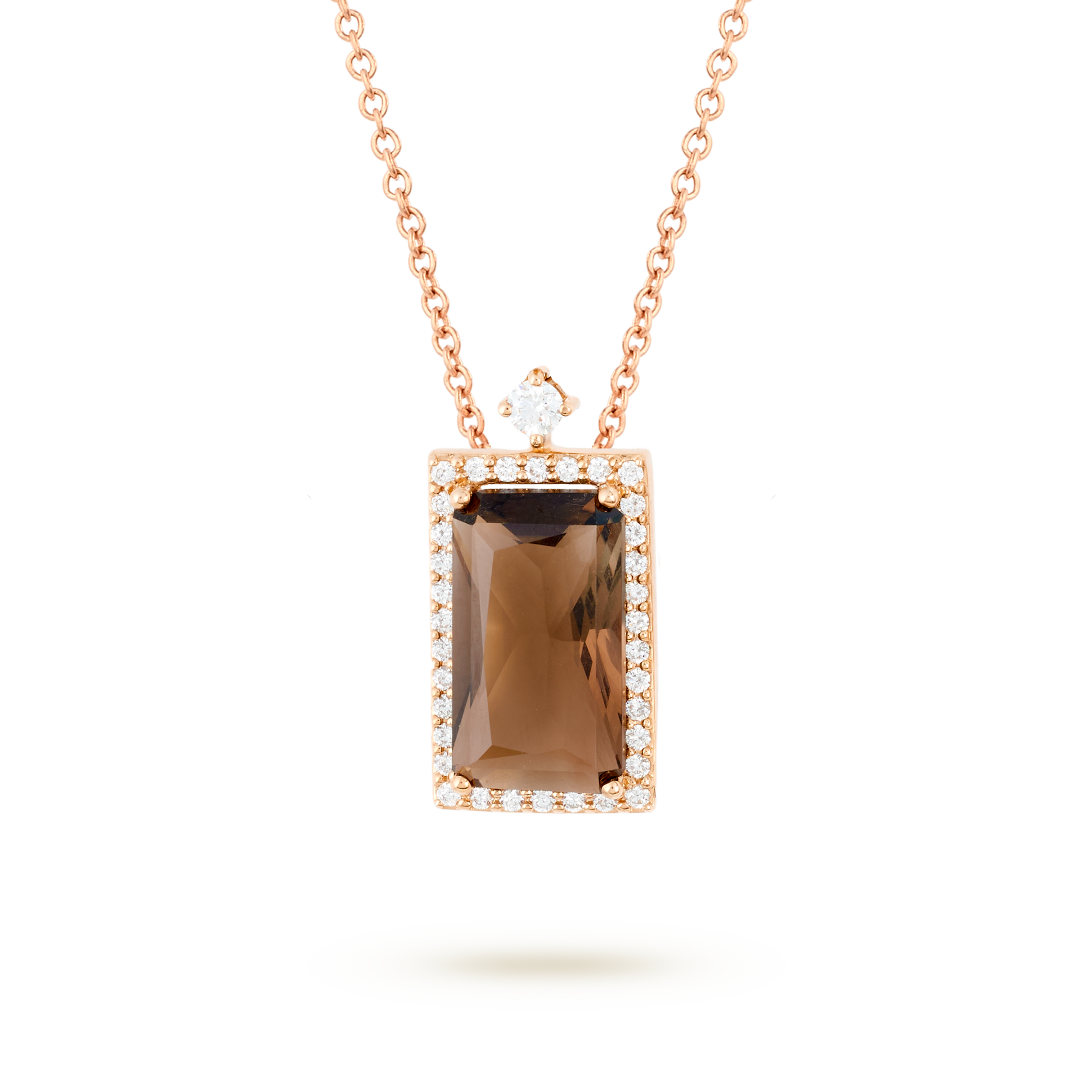18K rose gold pendant, diamond color GH, clarity SI 0.25 ct, fume quartz, 35 stones, 42cm forzatina chain lobster clasp