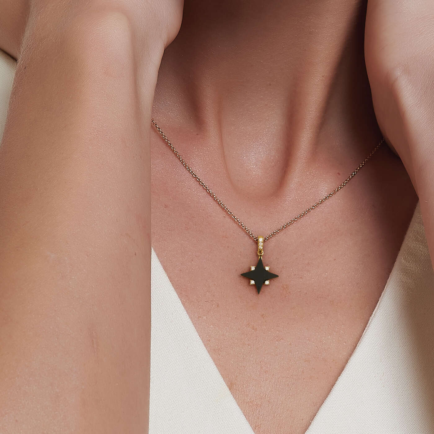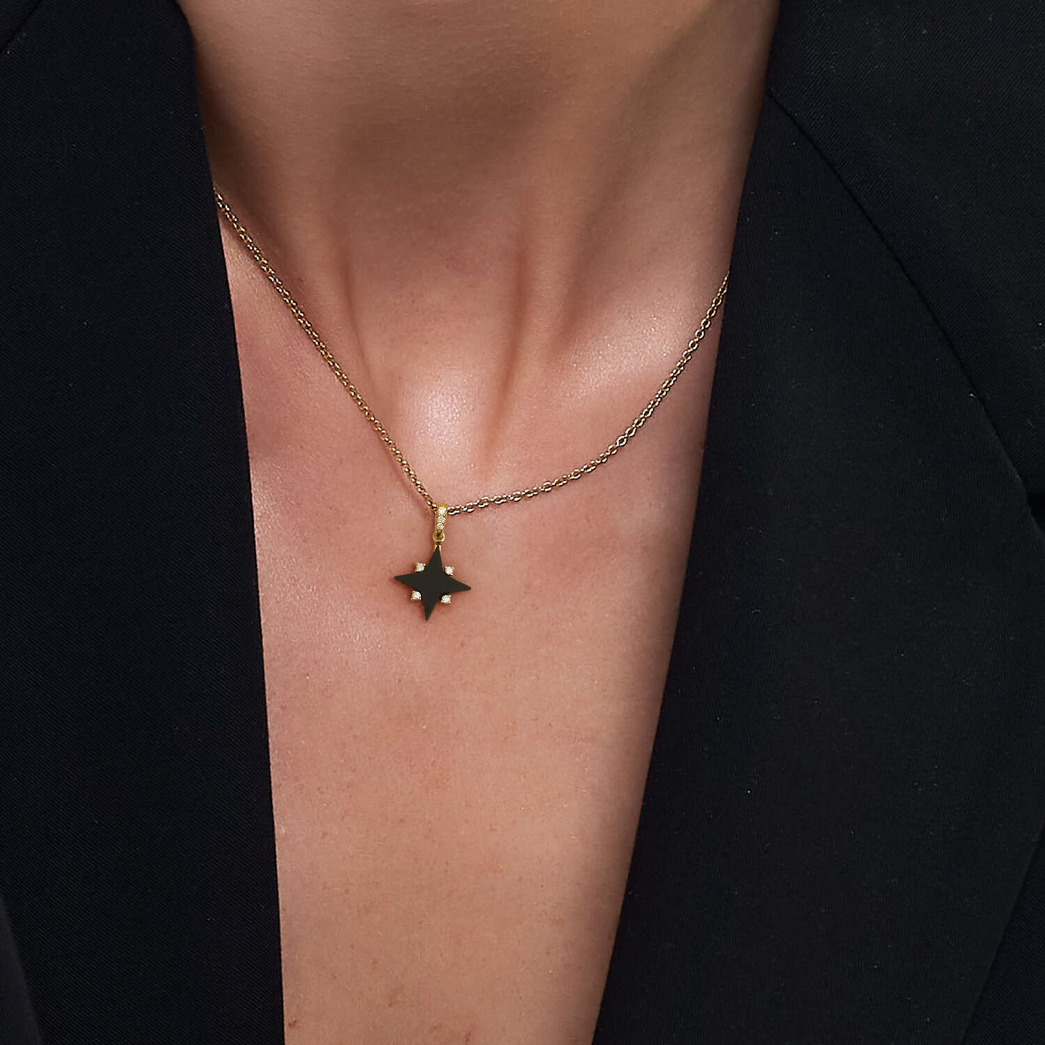Collection Timeless Pendant Gold, Diamond 0.07 ct, onyx, designer
