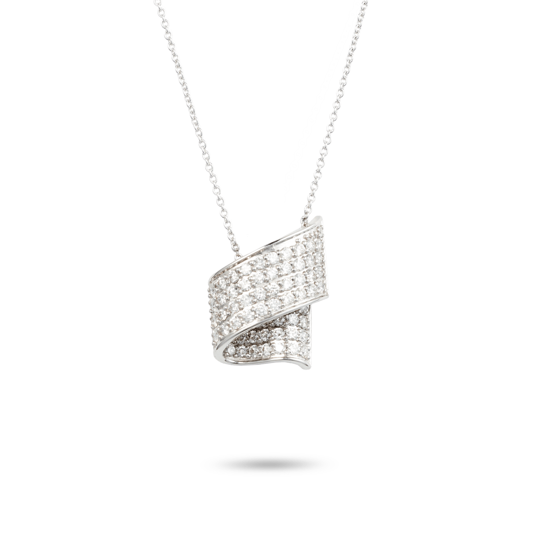 18K white gold pendant, diamond color GH, clarity SI 0.75 ct, 64 stones, 42cm forzatina chain lobster clasp