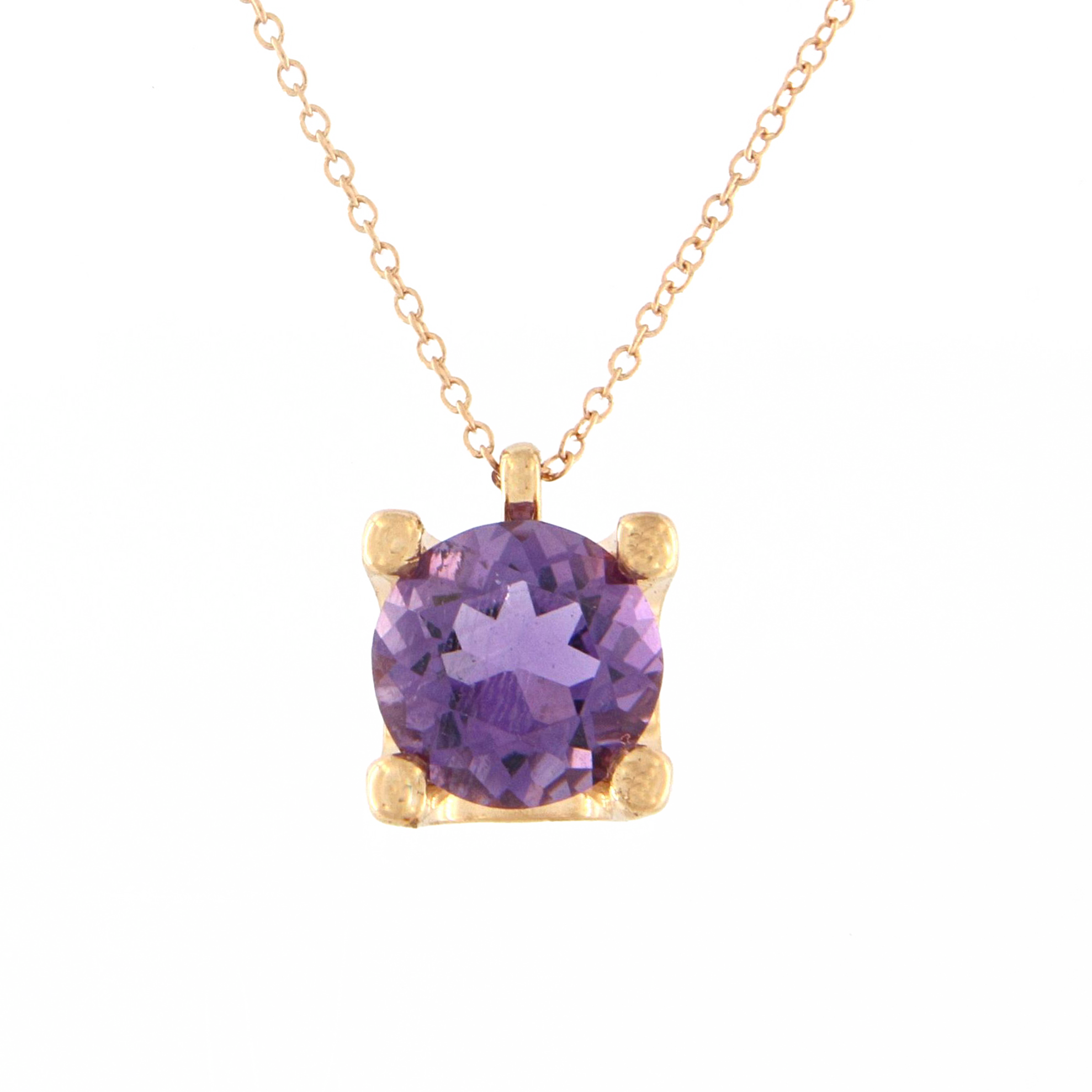 18K rose gold pendant, amethyst, 42cm rolo chain lobster clasp