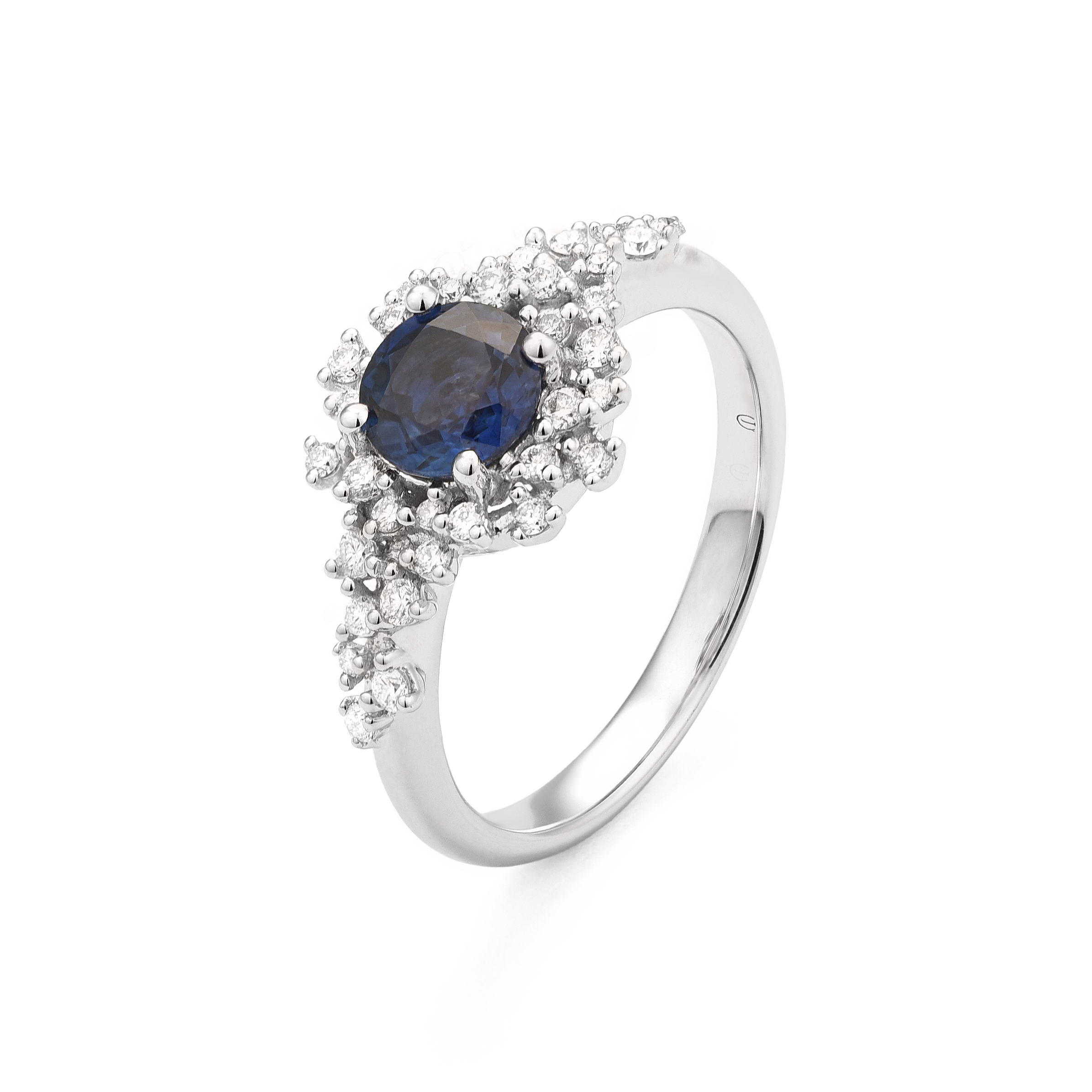 18K white gold ring, diamond color GH, clarity SI 0.27 ct, sapphire, 33 stones