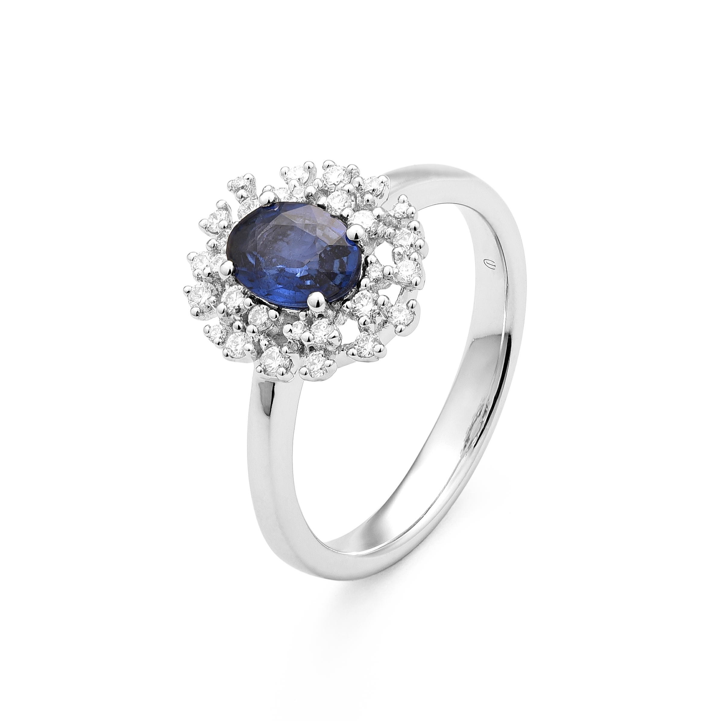 Collection Princess Ring Gold, Diamond 0.23 ct, sapphire, halo