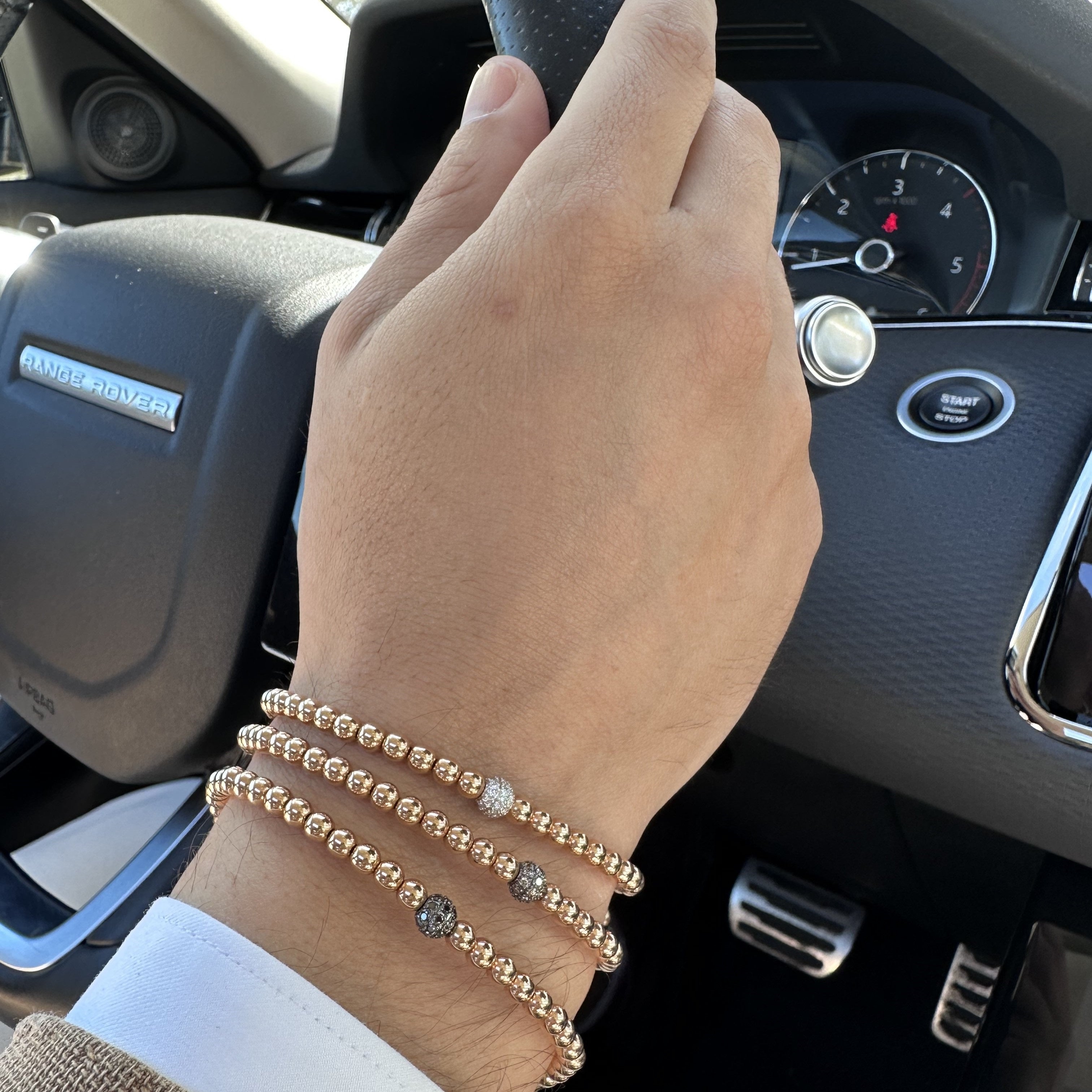 18K rose gold bracelet, 26 stones, 6mm pavé black diamonds bead 4mm bead, Adjustable nylon cord from 15cm to 25cm