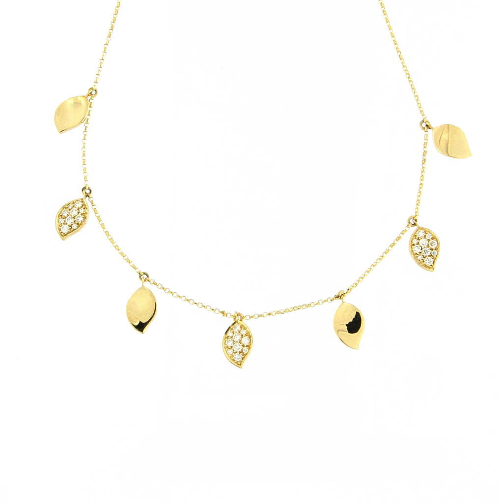 Collection Leaves and crossed Pendant Gold, Diamond 0.38 ct