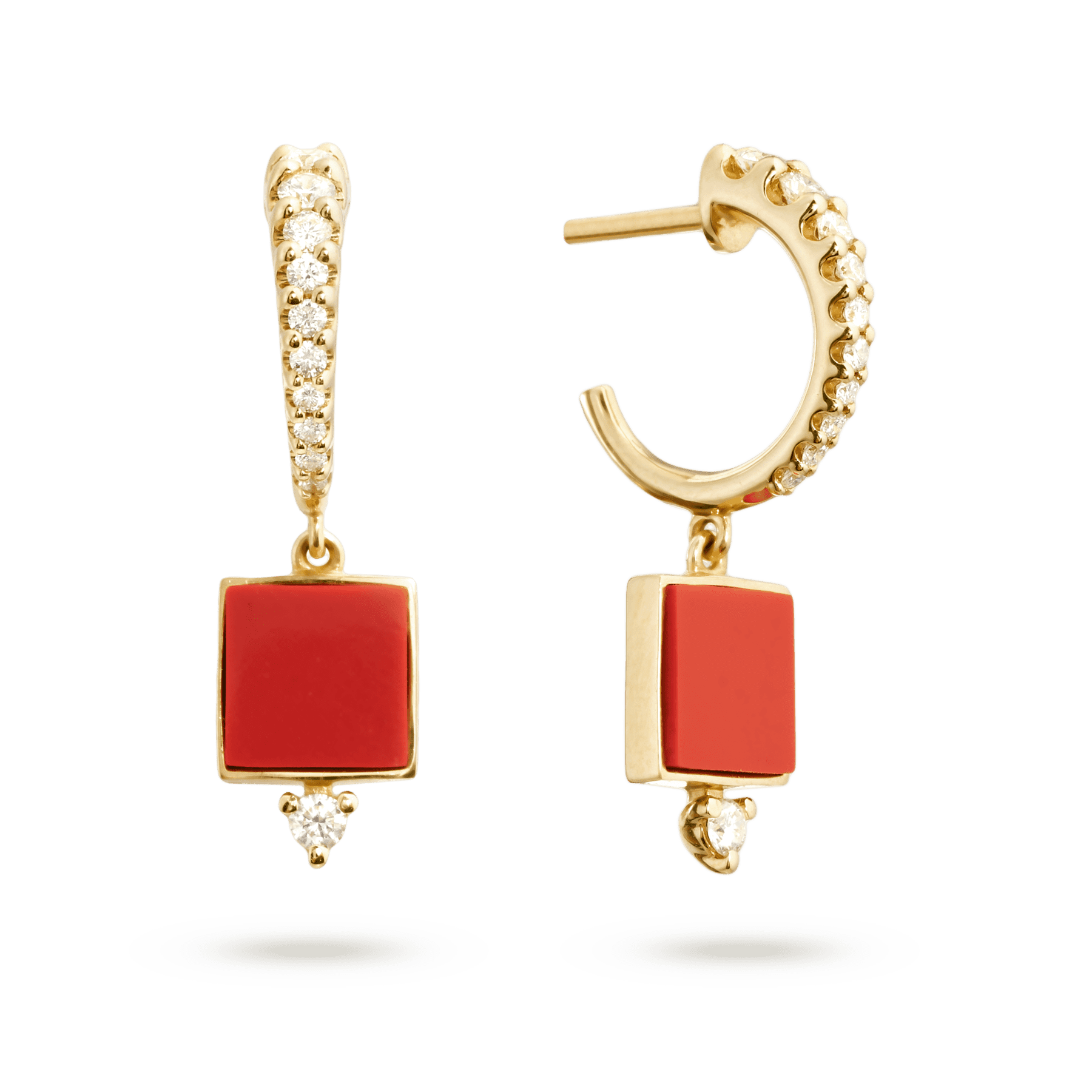 Collection Timeless Earring Gold, Diamond 0.33 ct, coral p, dangle