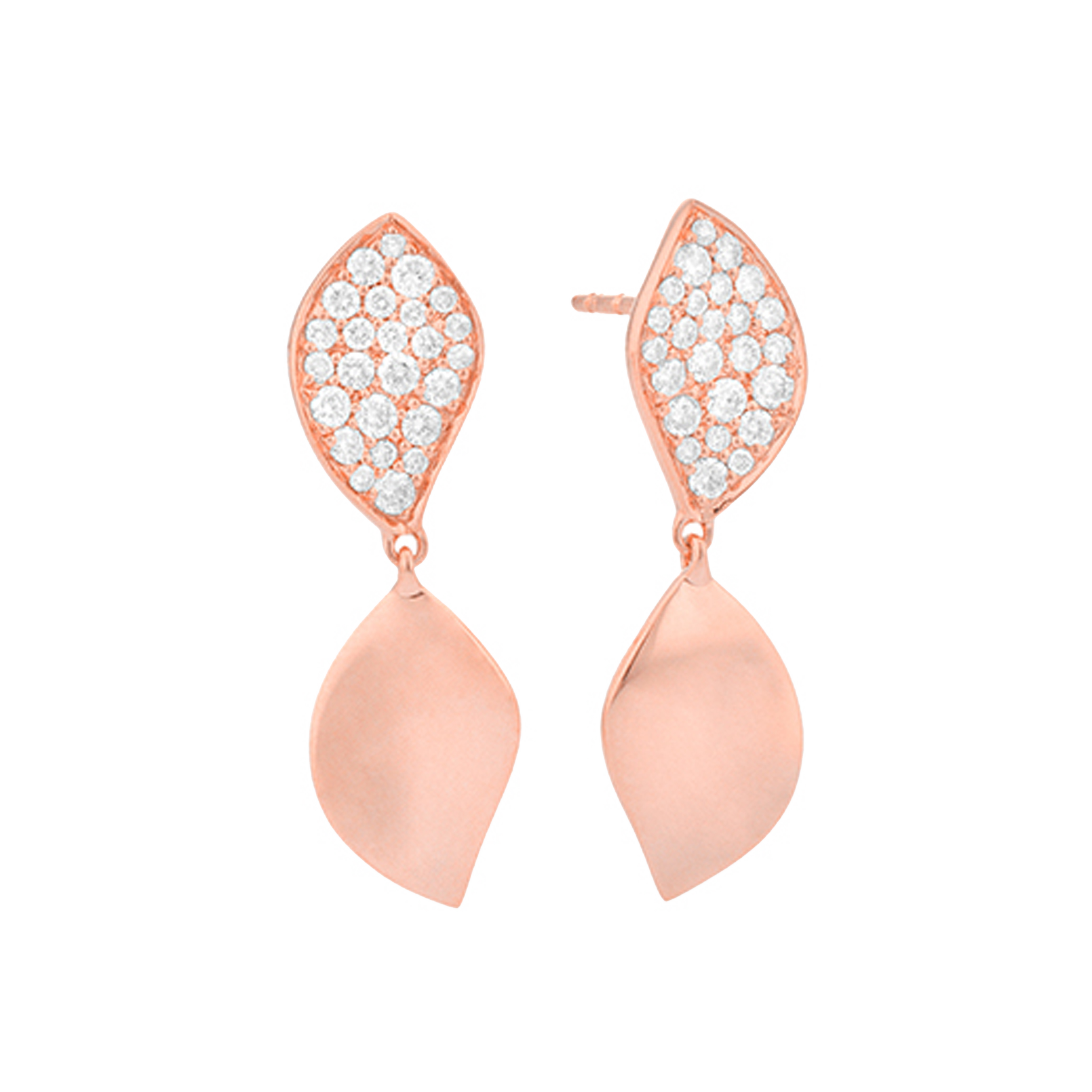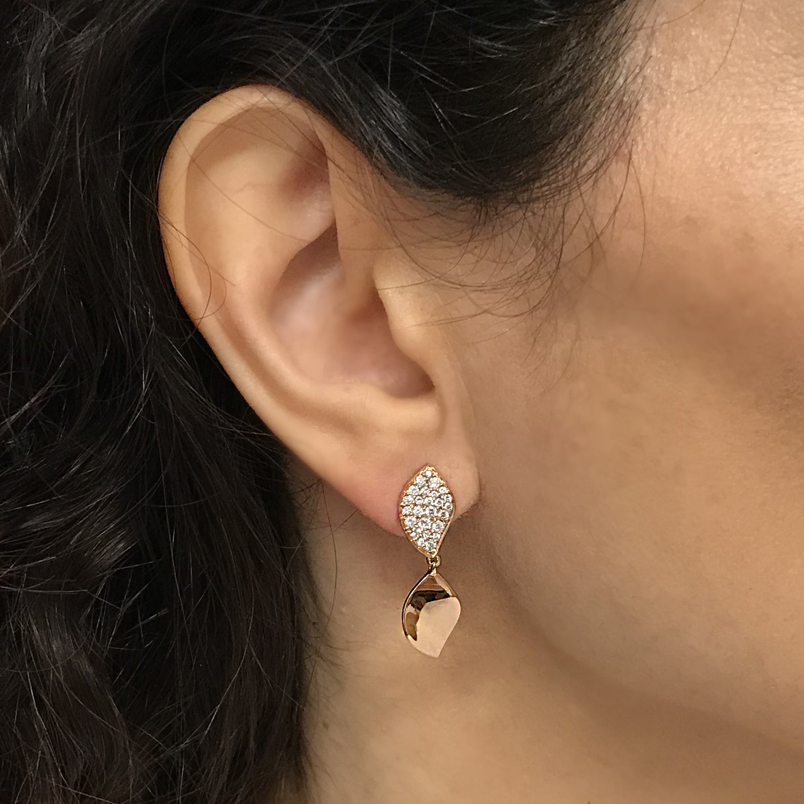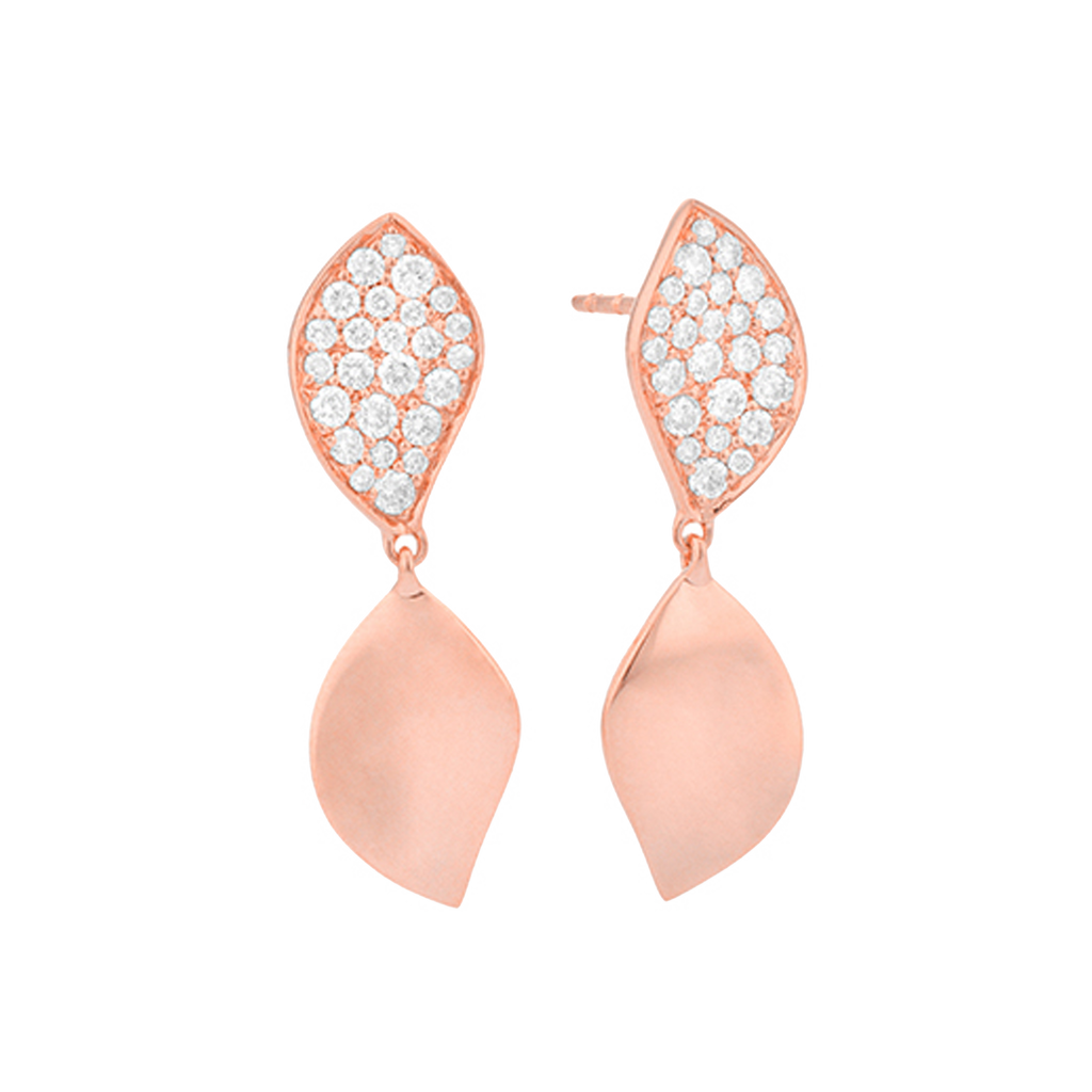 18K rose gold earring, diamond color GH, clarity SI 0.61 ct, 74 stones, pressure clasp