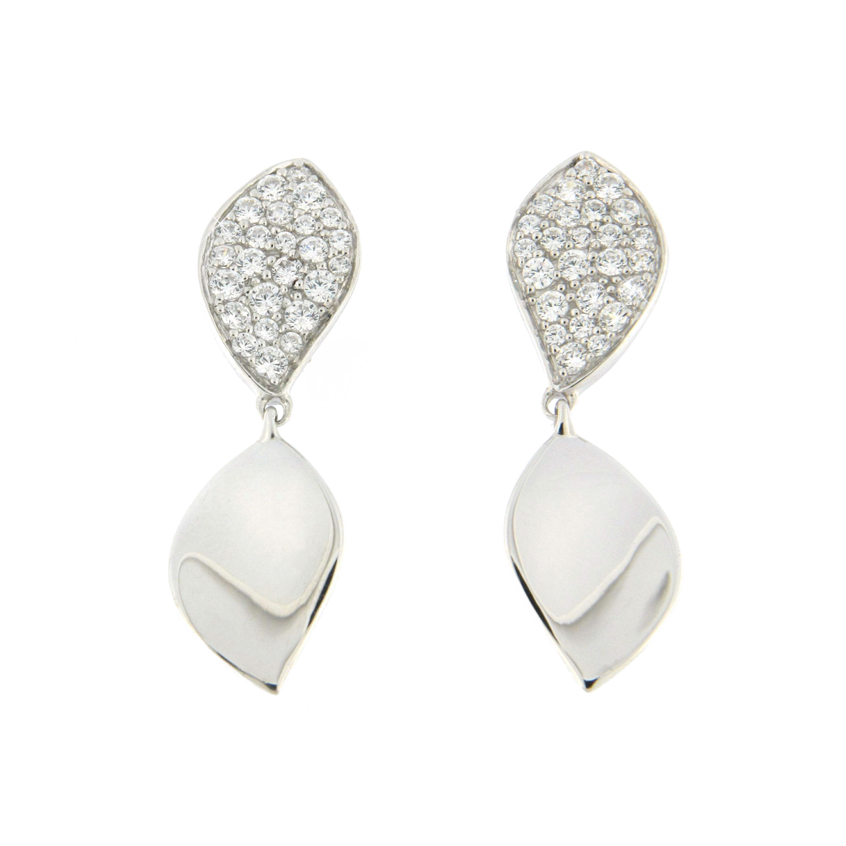 Collection Leaves and crossed Earring Gold, Diamond 0.61 ct, dangle