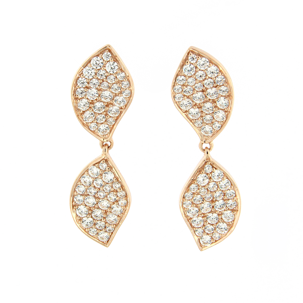 Collection Leaves and crossed Earring Gold, Diamond 1.22 ct, dangle