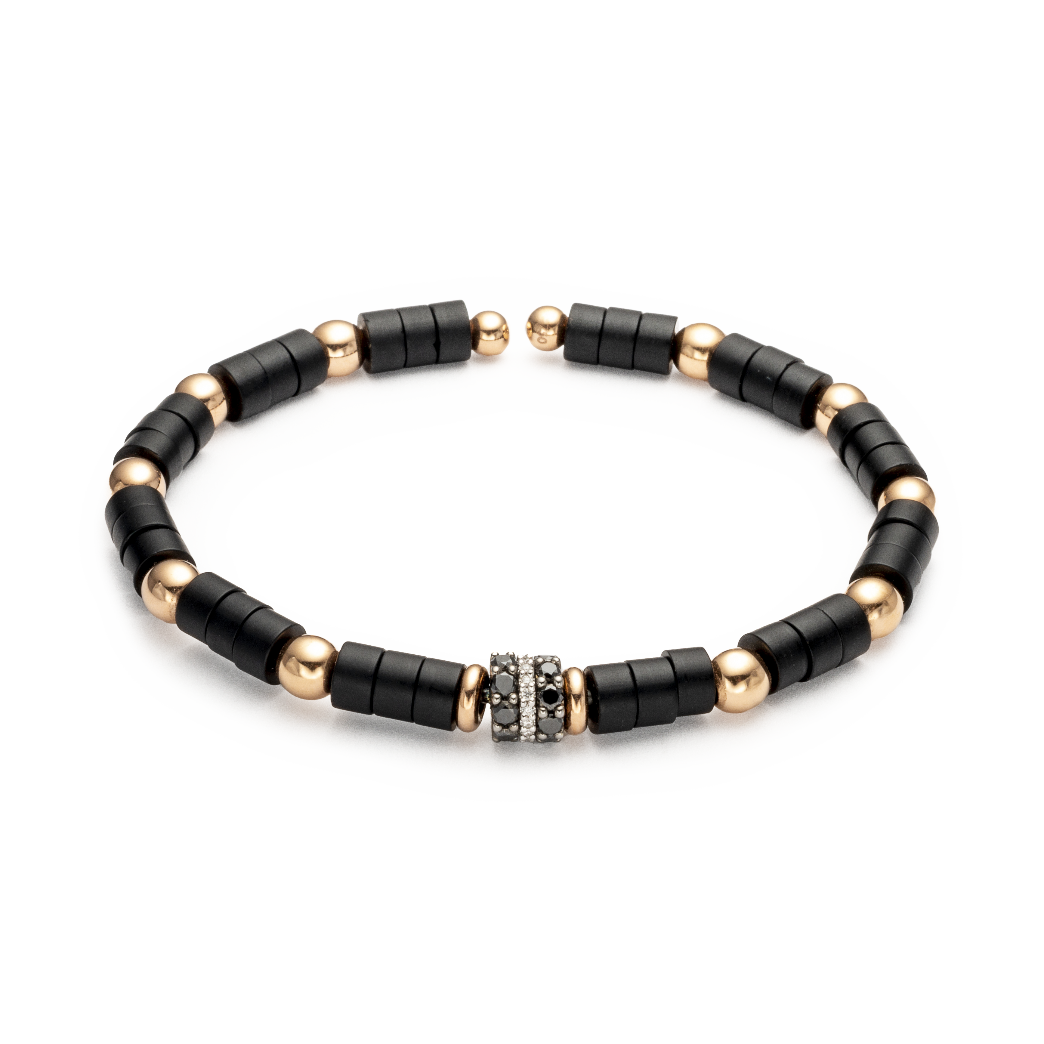 18K rose gold bracelet, diamond color GH, clarity SI 0.07 ct and black diamond 0.53 ct, onyx, 31 stones, titanium size M (16.0cm) 4mm bead 5mm bead