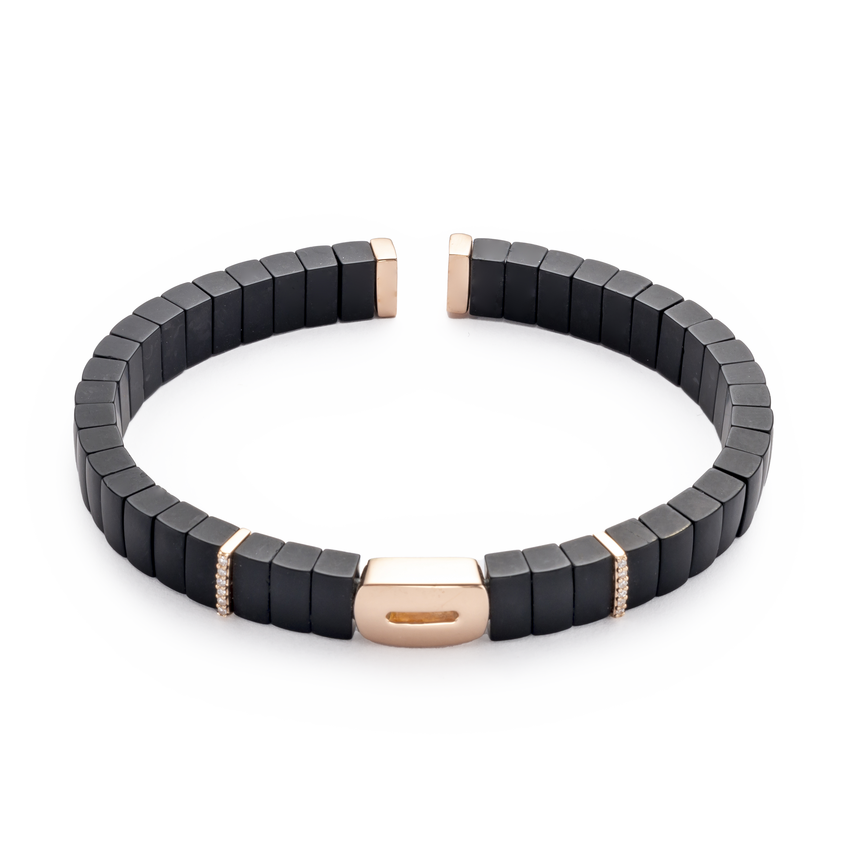 18K rose gold bracelet, diamond color GH, clarity SI 0.06 ct, onyx, 12 stones, titanium size M (16.0cm)