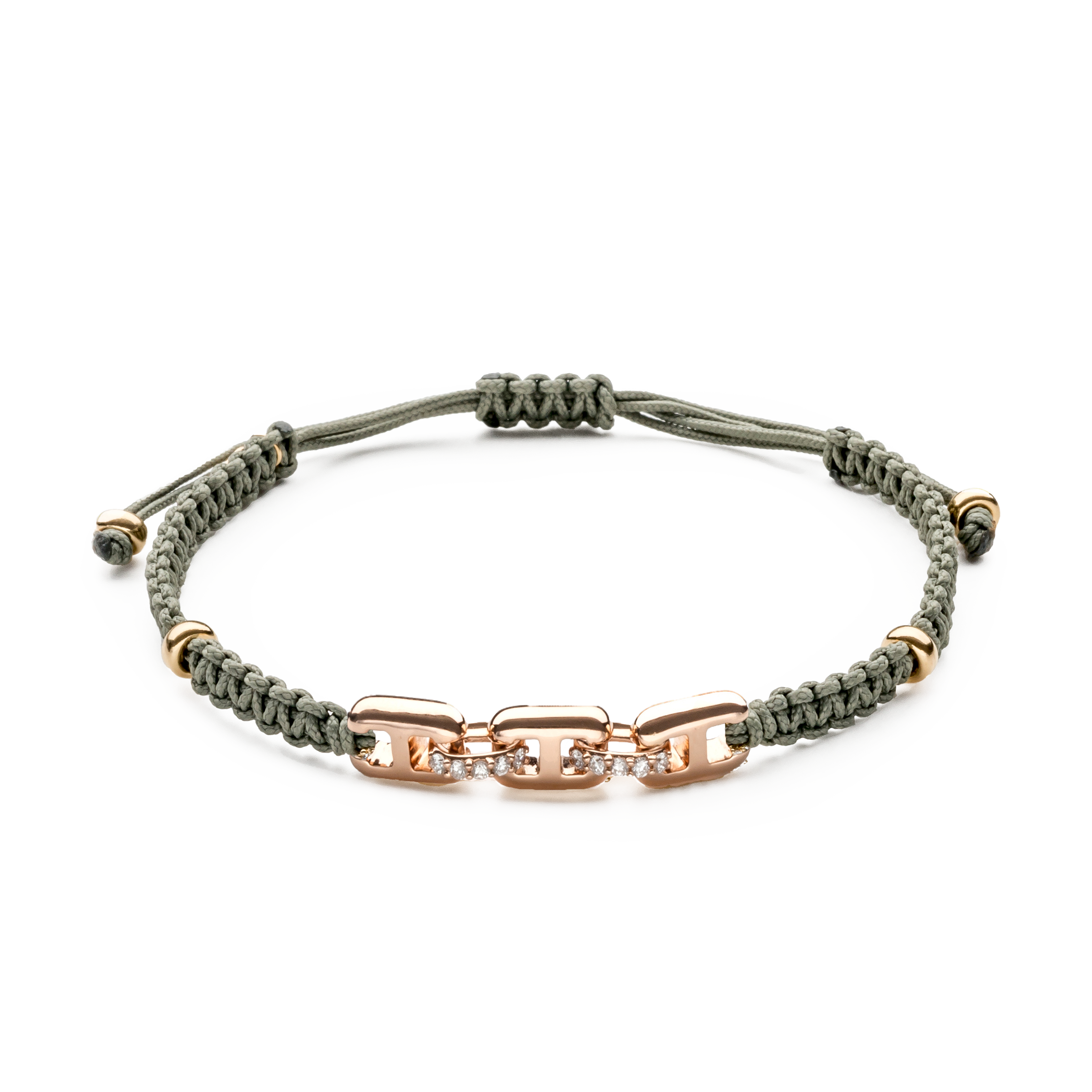 18K rose gold bracelet, 10 stones, triple diamond link, Adjustable nylon cord from 15cm to 25cm