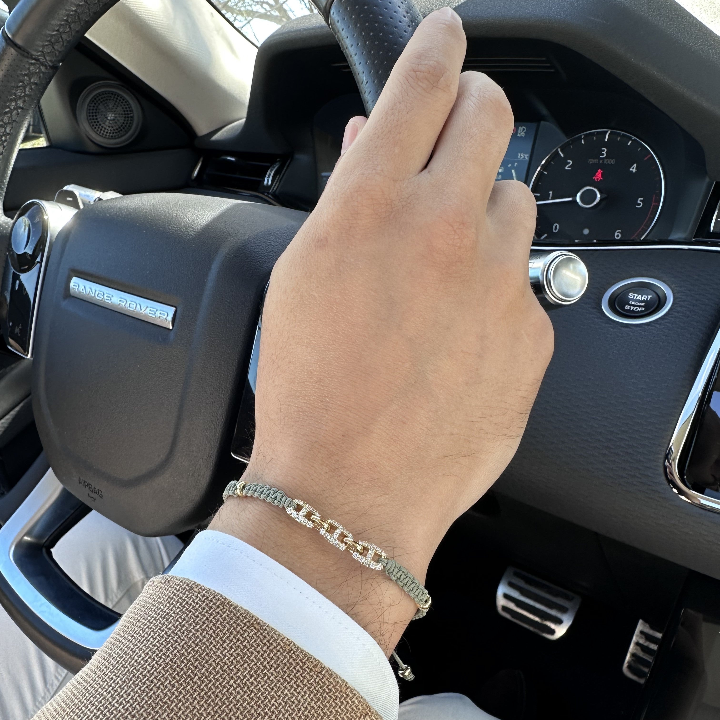 18K rose gold bracelet, 36 stones, triple diamond link, Adjustable nylon cord from 15cm to 25cm
