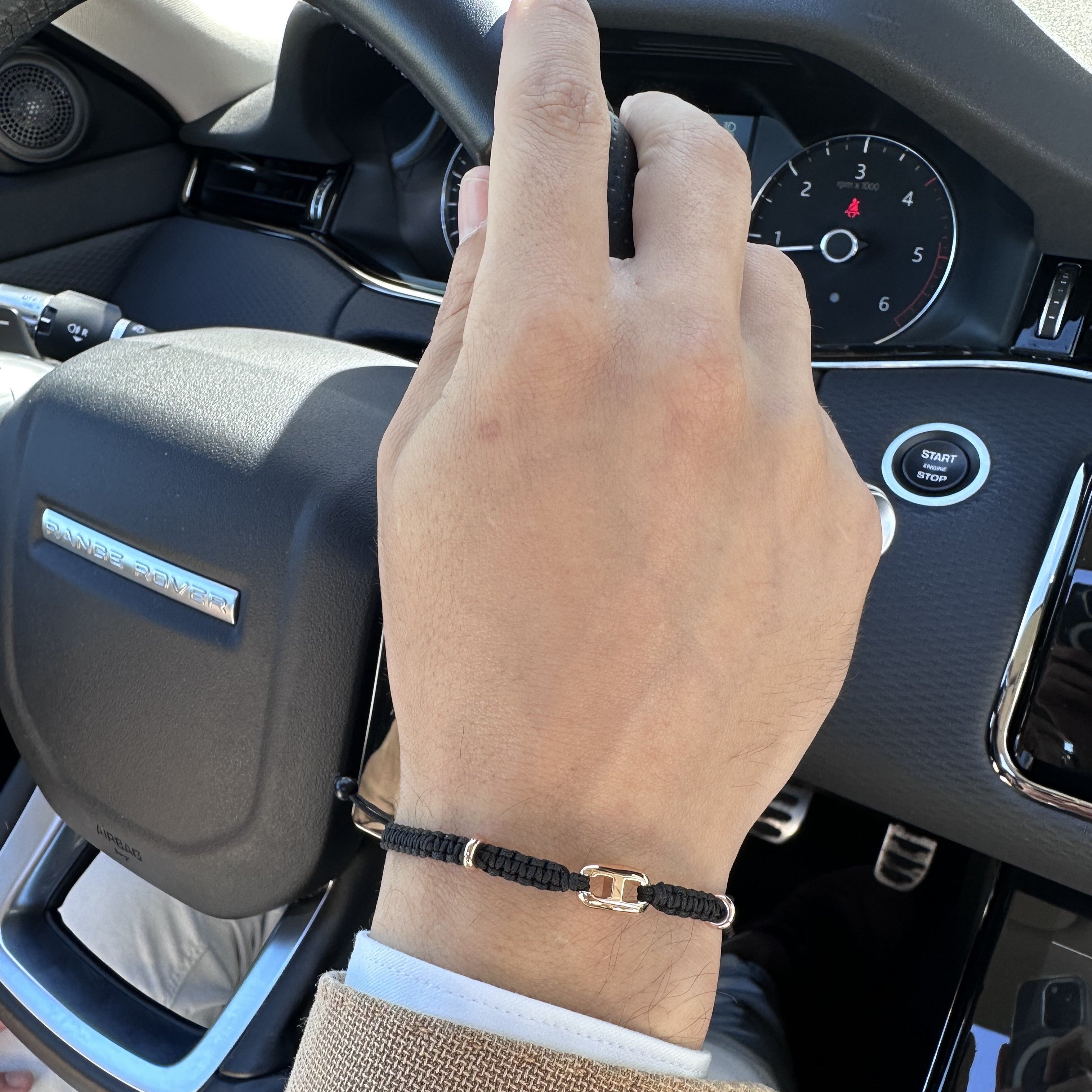 18K rose gold bracelet, onyx, link, Adjustable nylon cord from 15cm to 25cm