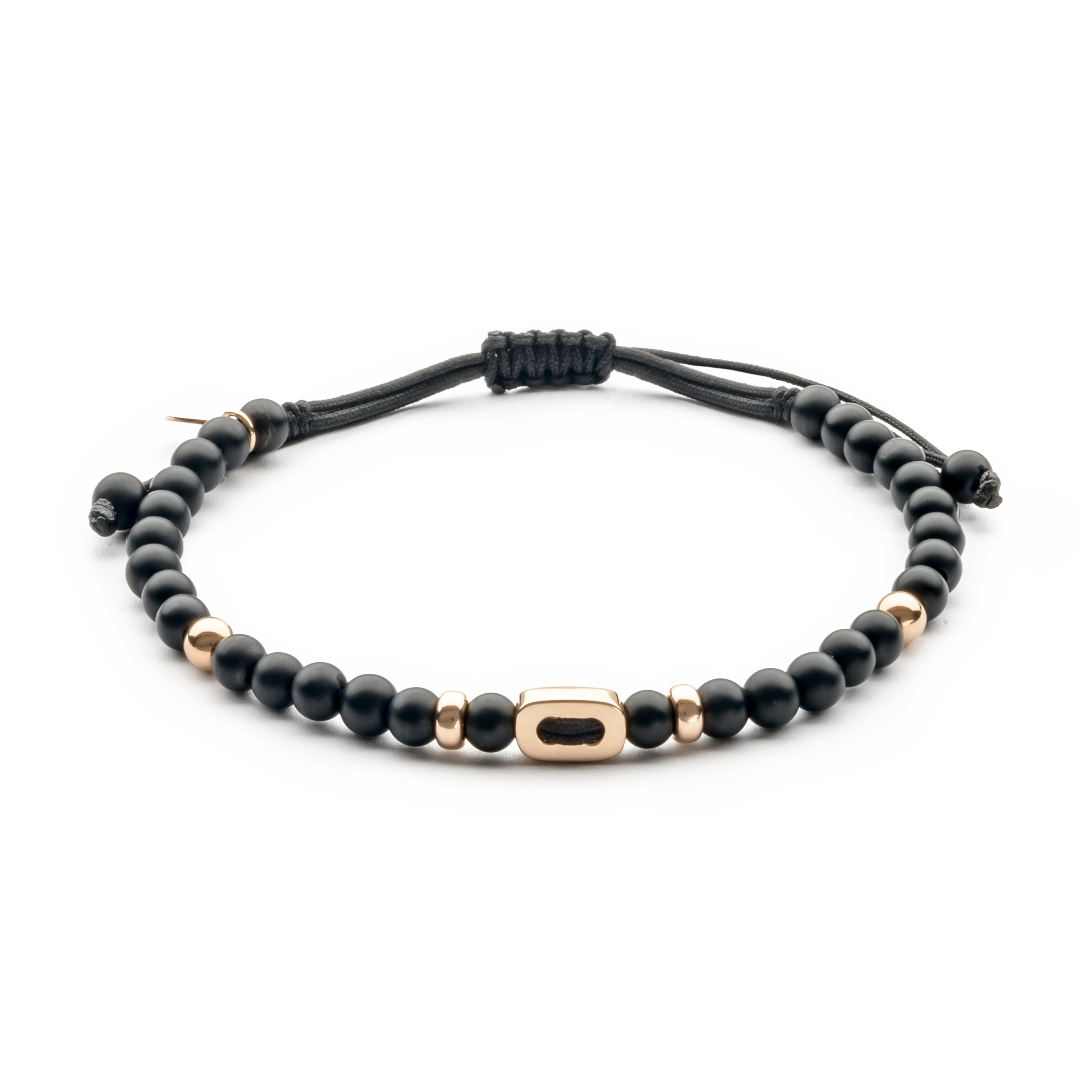 18K rose gold bracelet, onyx, smooth link 4mm bead, Adjustable nylon cord from 15cm to 25cm