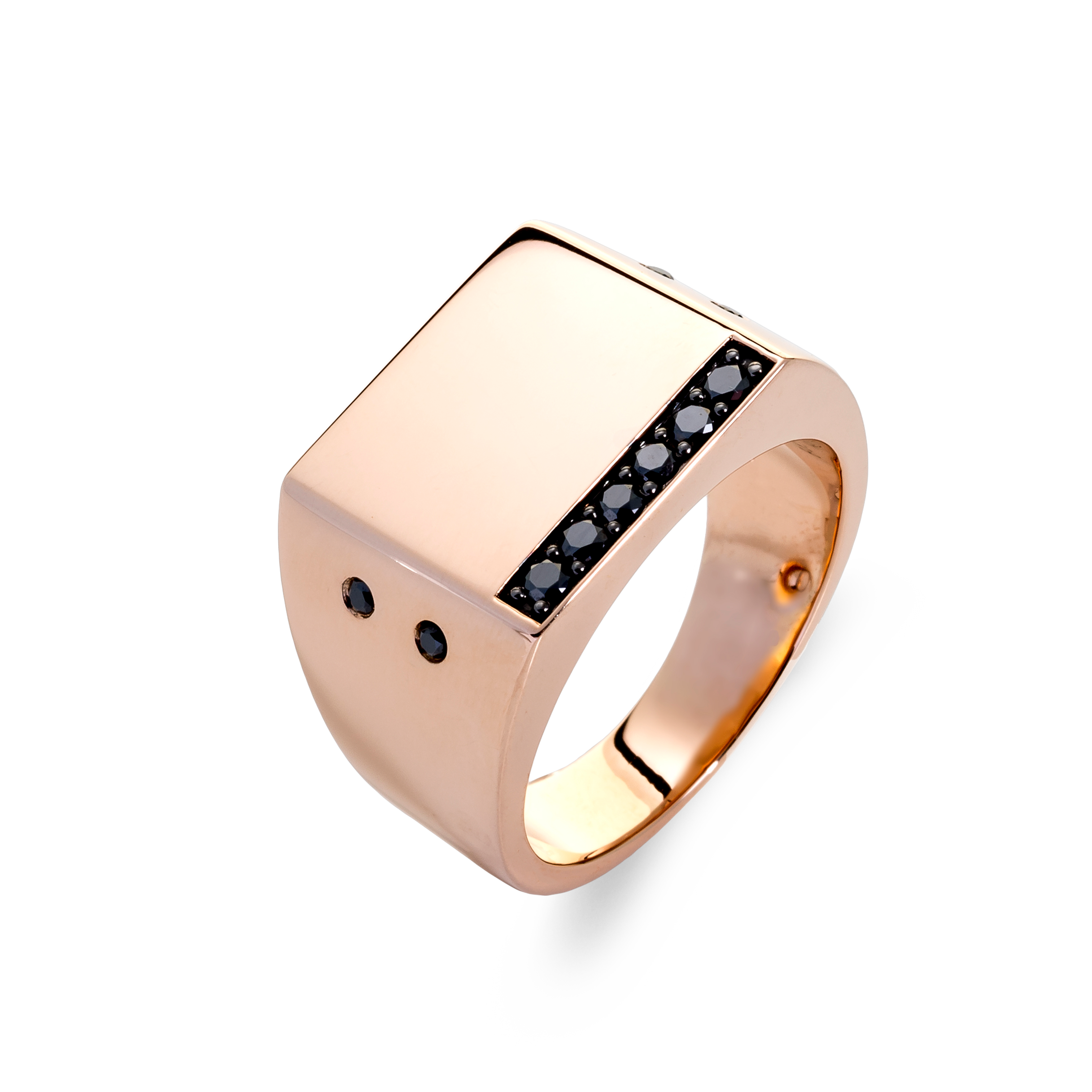 18K rose gold ring, black diamond 0.30 ct, 10 stones