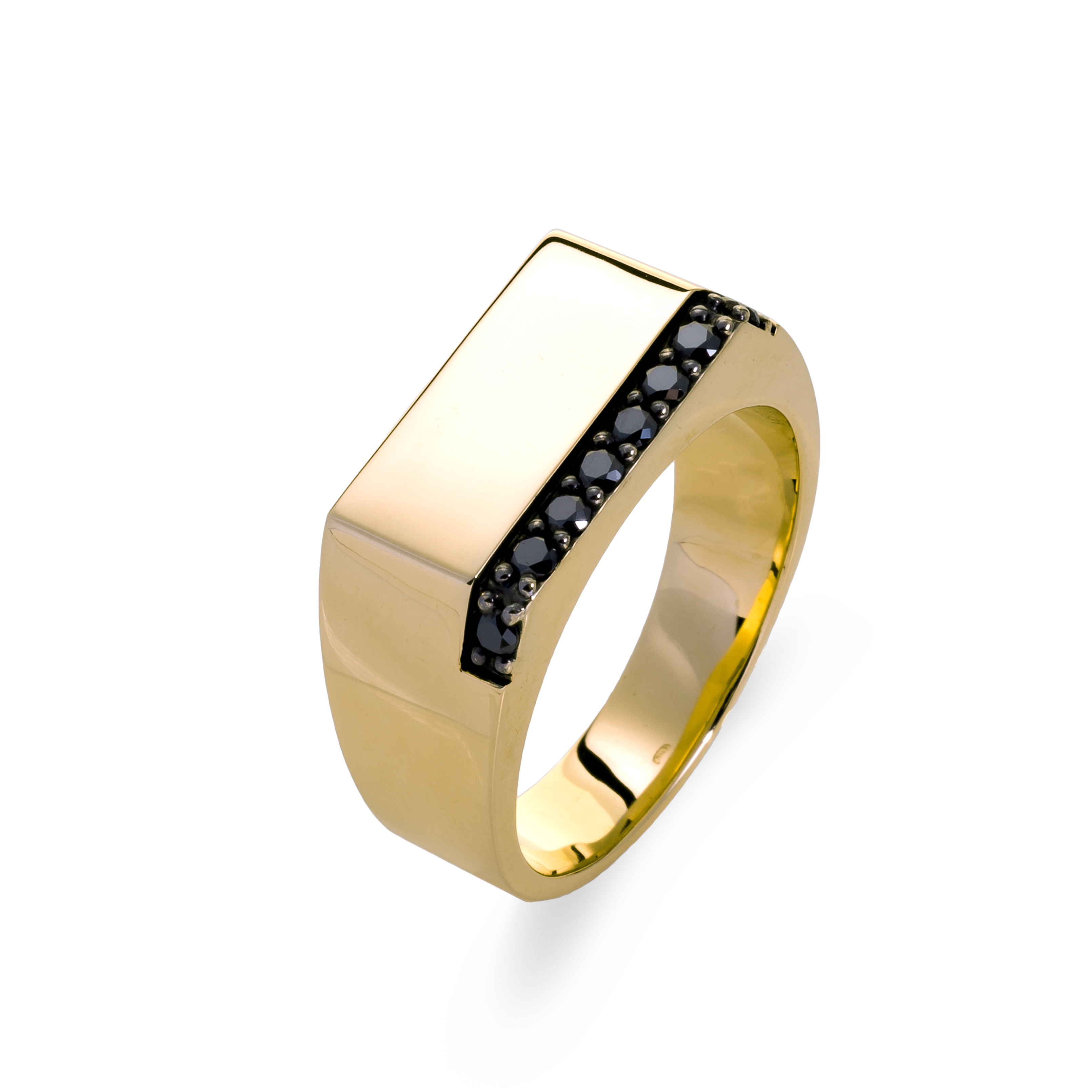 Collection Wolf Men rings & surf Ring Gold, Black diamond 0.32 ct, signet