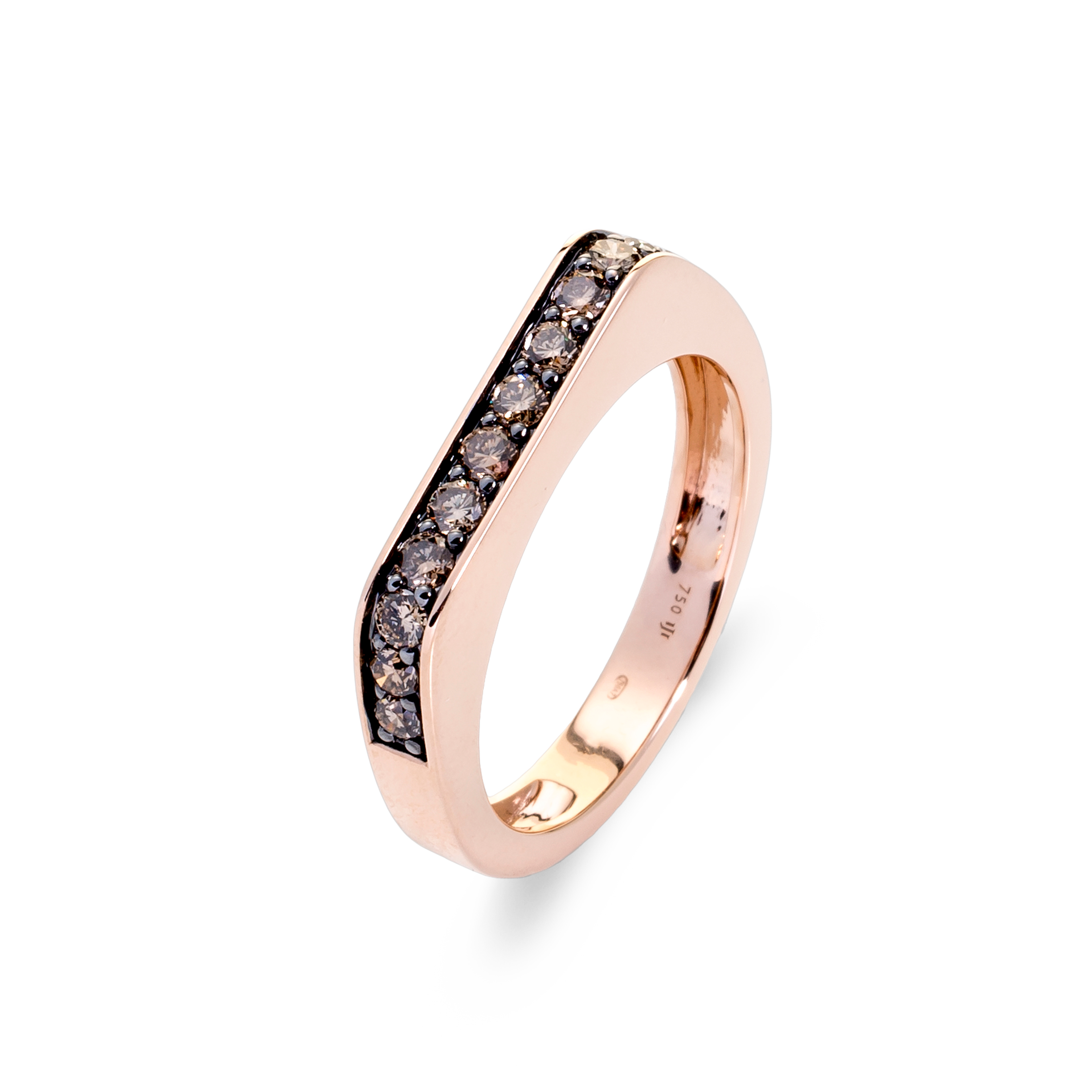 18K rose gold ring, brown diamond 0.42 ct, 12 stones