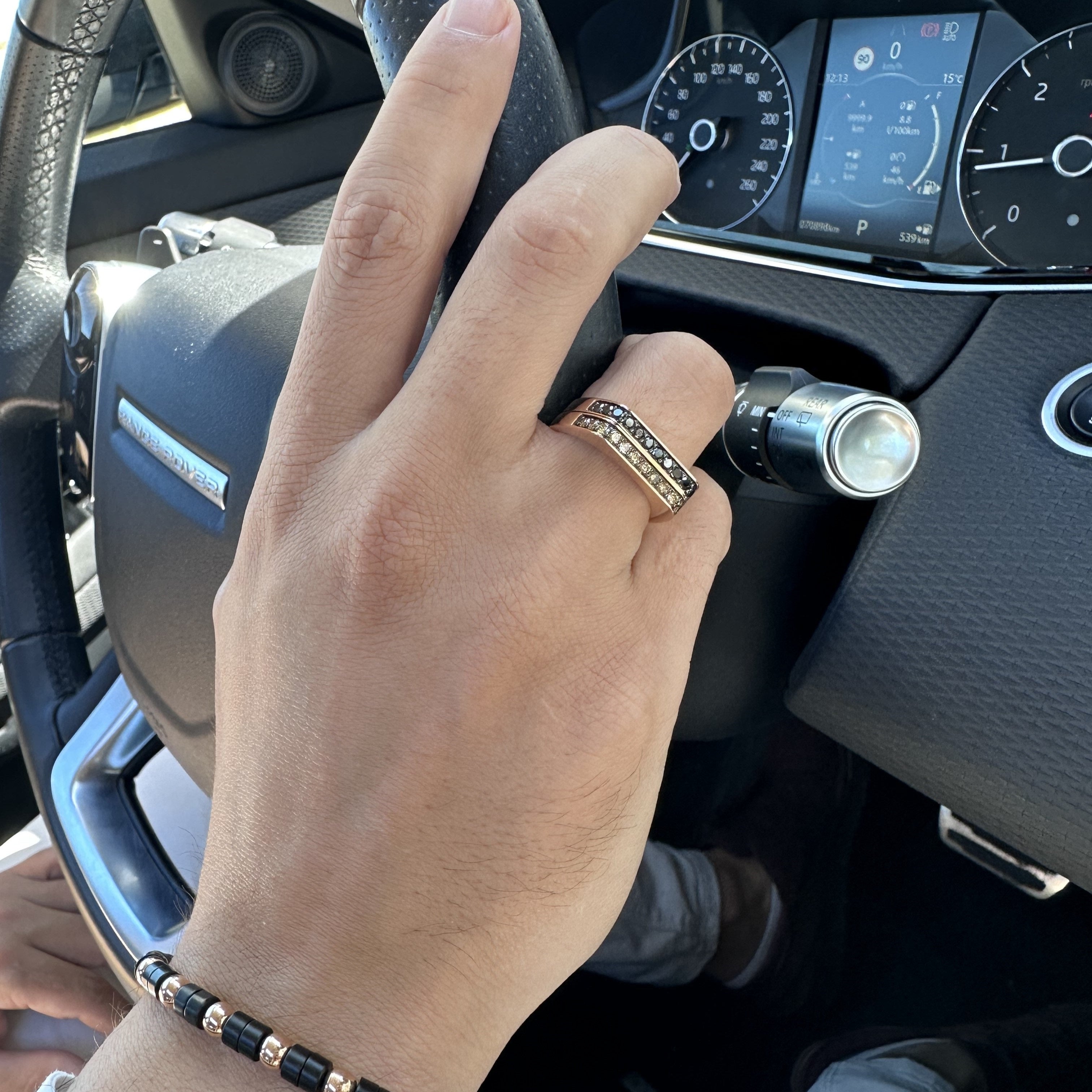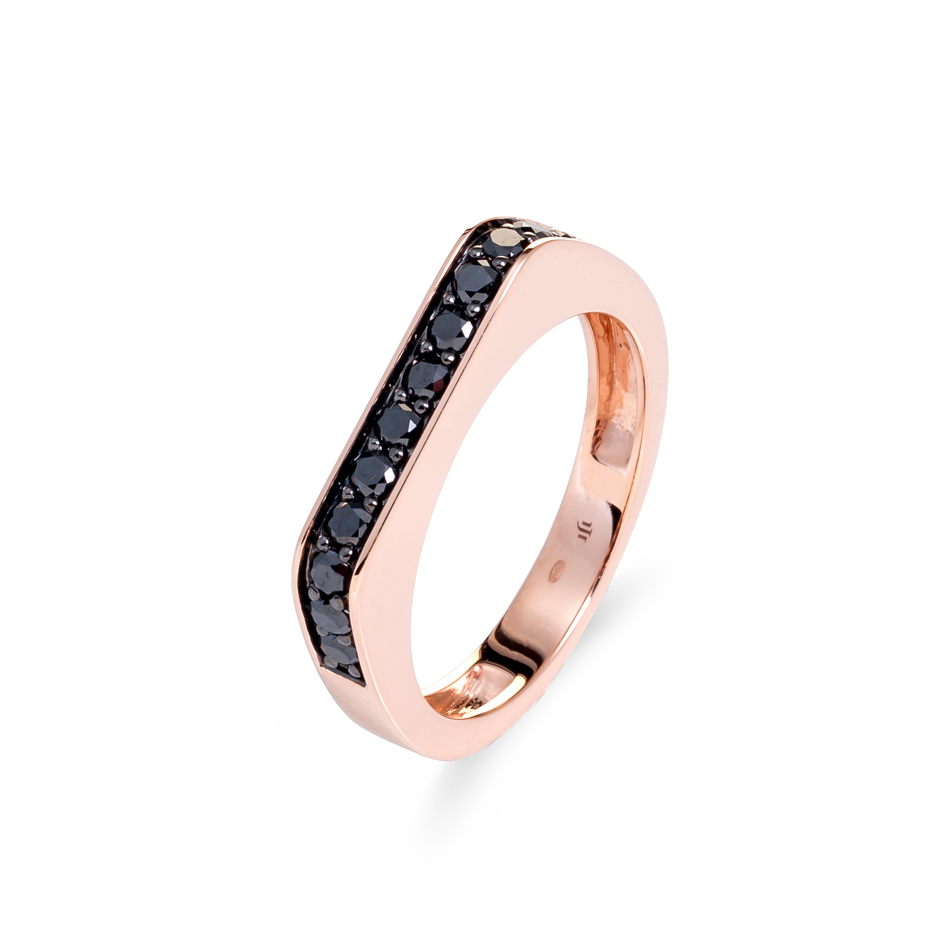 18K rose gold ring, black diamond 0.44 ct, 12 stones